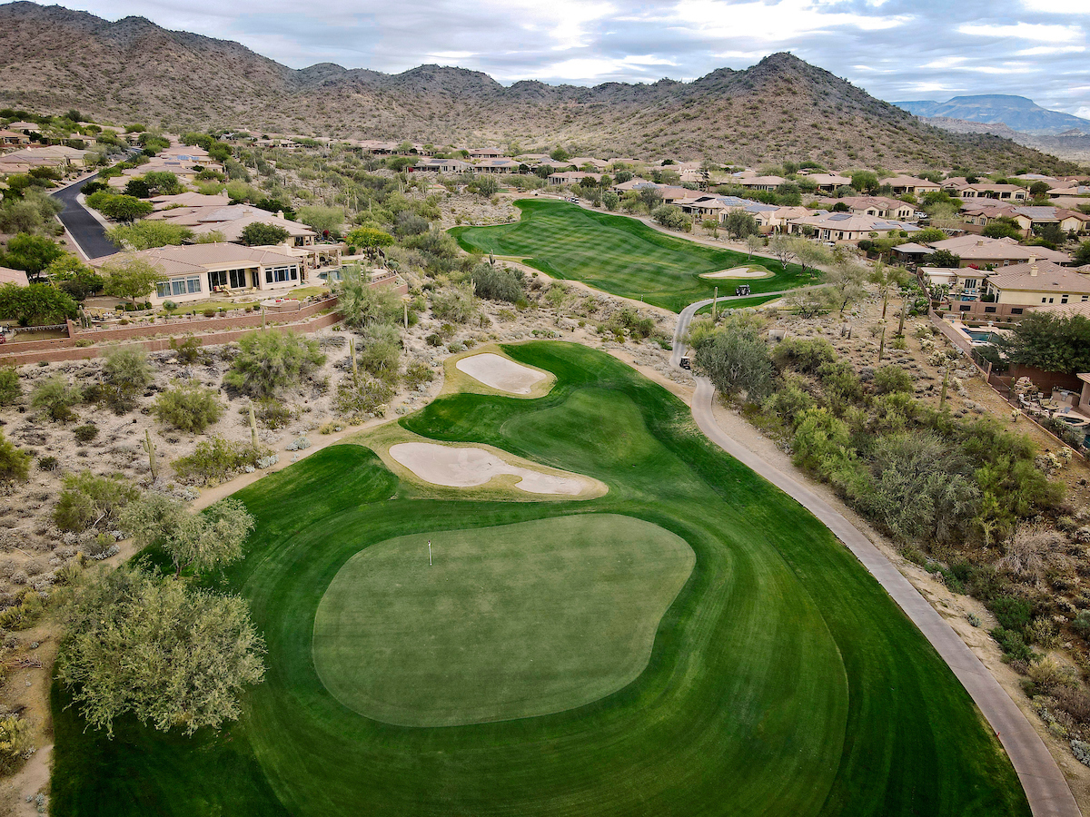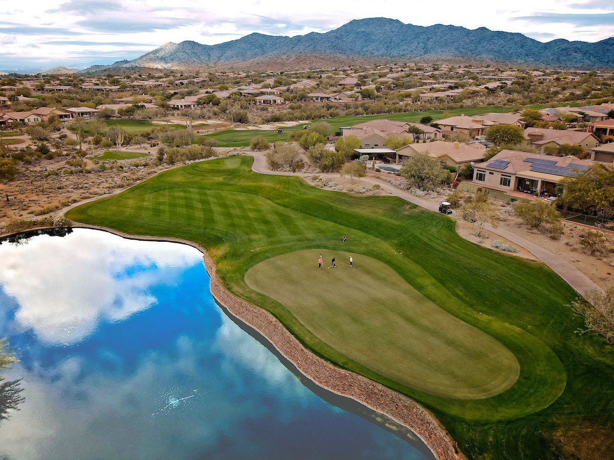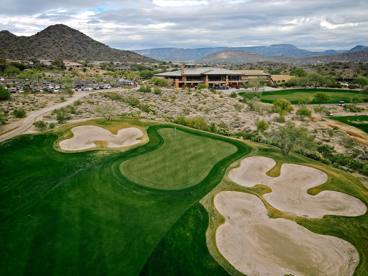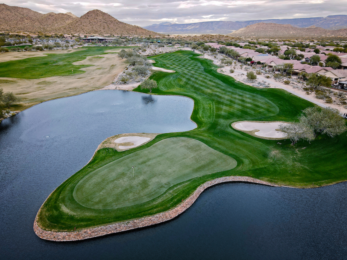 The Ironwood Course, which opened in January 2004 as a Phoenix private golf course, encompasses seven water features, intimidating bunkers, and a backdrop of a mountain mesa. This is a classic high-risk/high-reward design and the more challenging of the two Anthem, Arizona golf courses. Post-round conversation often focuses on “Anthem Alley,” the 10th through 12th uniquely crafted water holes that tend to drive up scores.