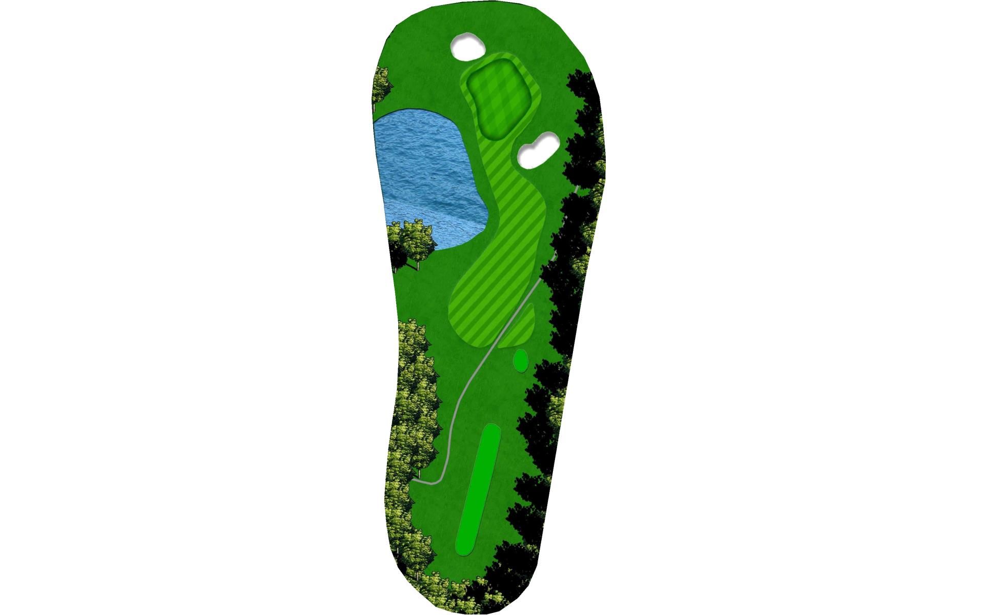 Play the right side of the fairway left is water, on the approach shot play it true to club and aim for the middle of the green.