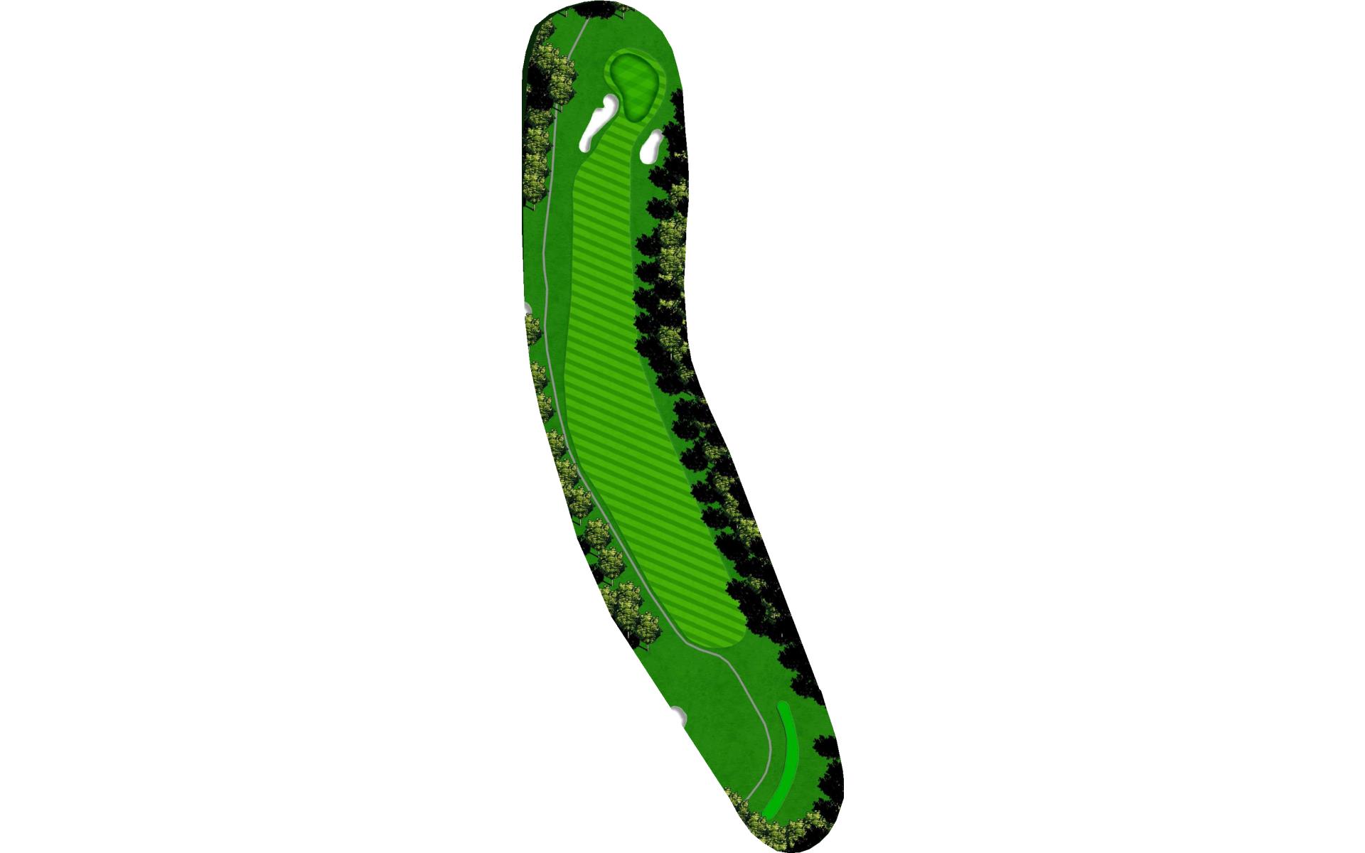 Driveable par 4, make sure you favor left, right is lined with trees and thick, rough.