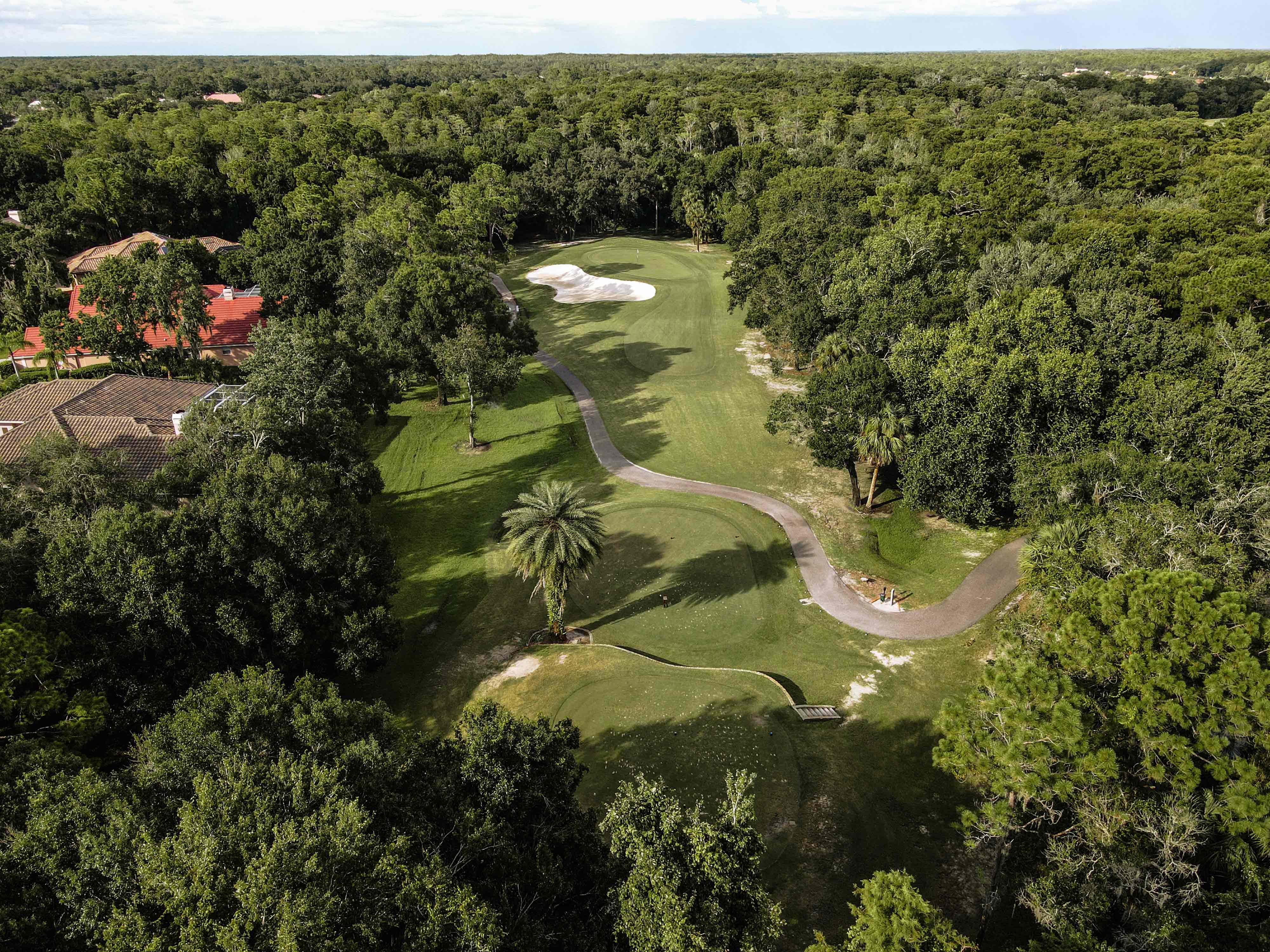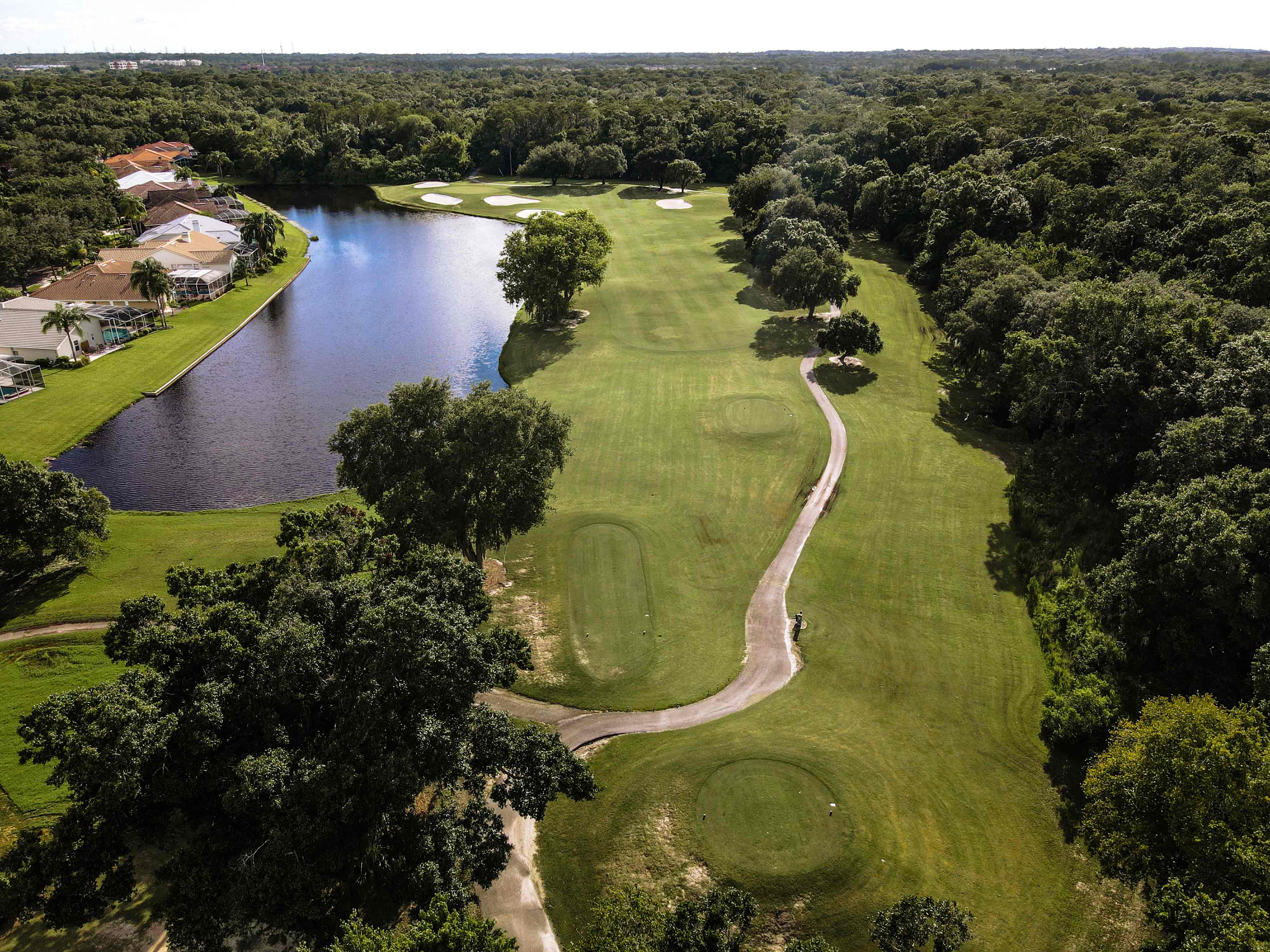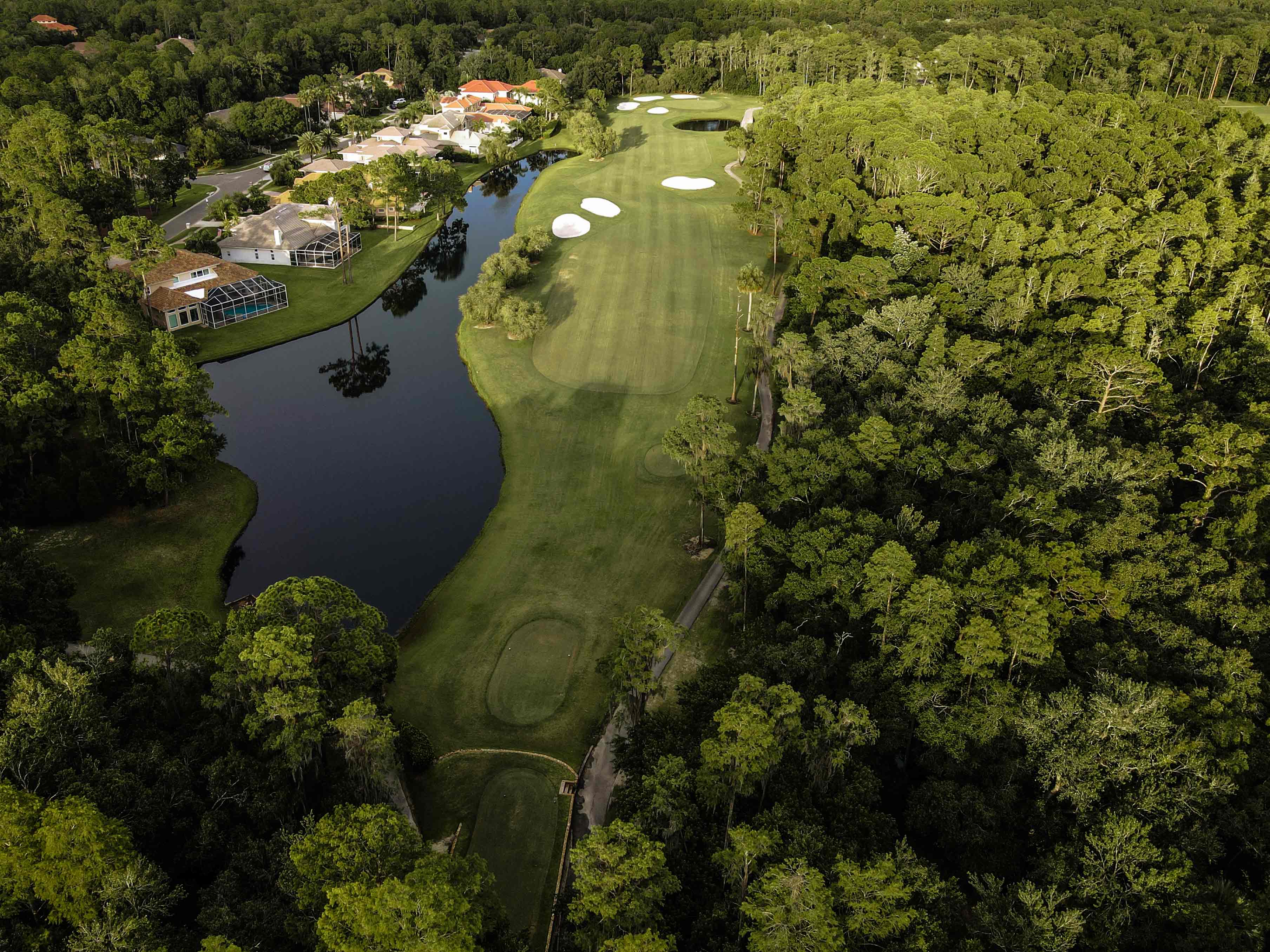 | Dogleg right Par 5, reachable for the longer hitters, water down the left side of the fairway |