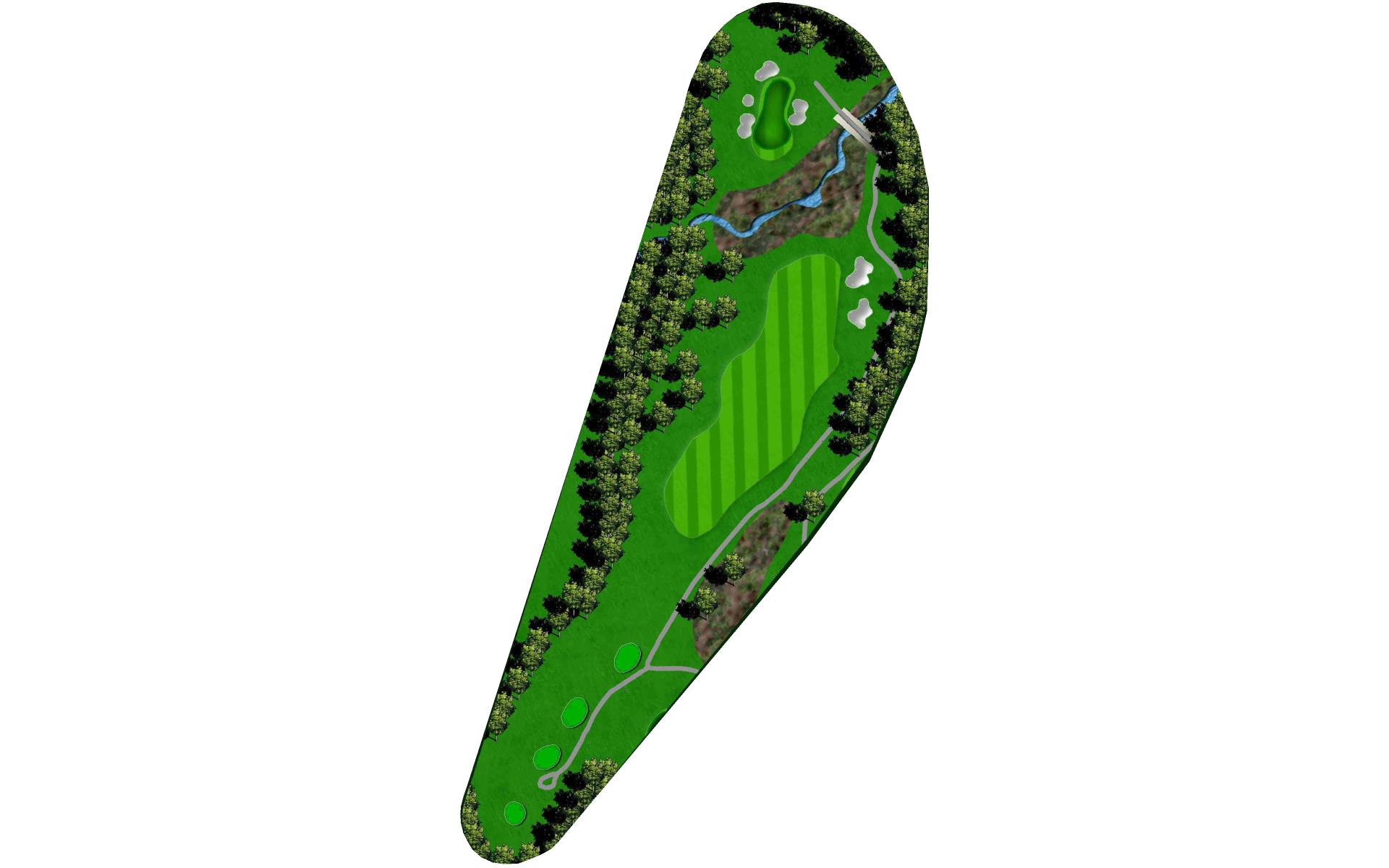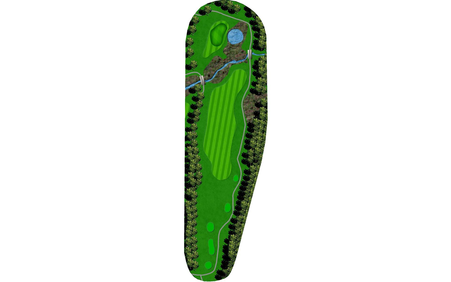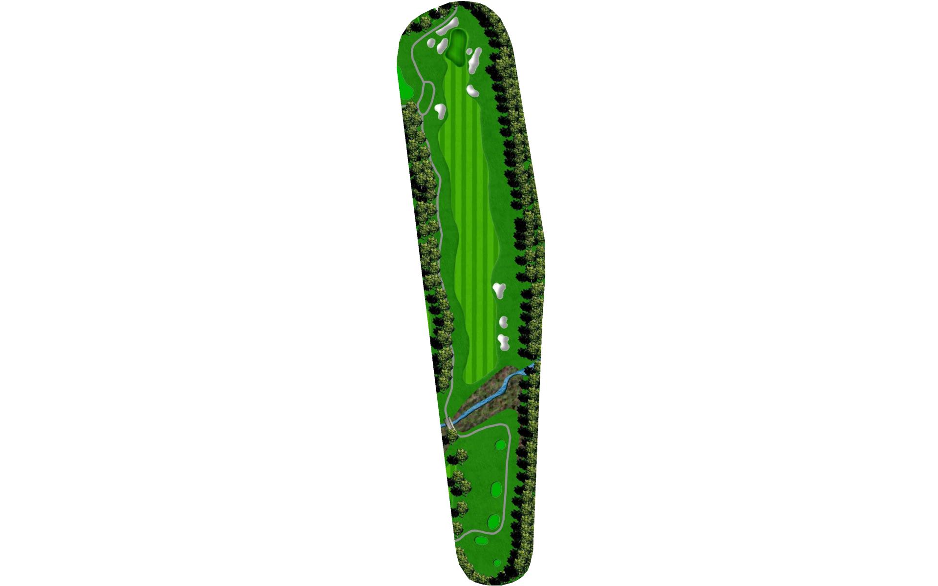 The third will make you feel like you’re playing the #3 ranked golf course in Tennessee, Spring Creek Ranch. It’s a par 3 with a multi-tiered green that’s guarded in front by a dry streambed. Bunkers protect all sides of this putting surface, one on the left and two on the right.