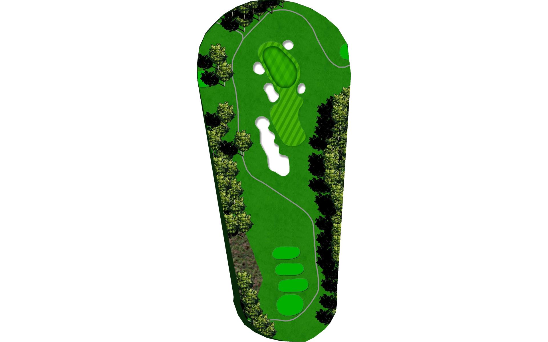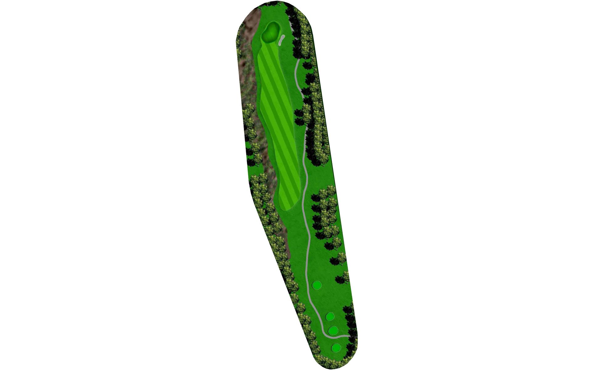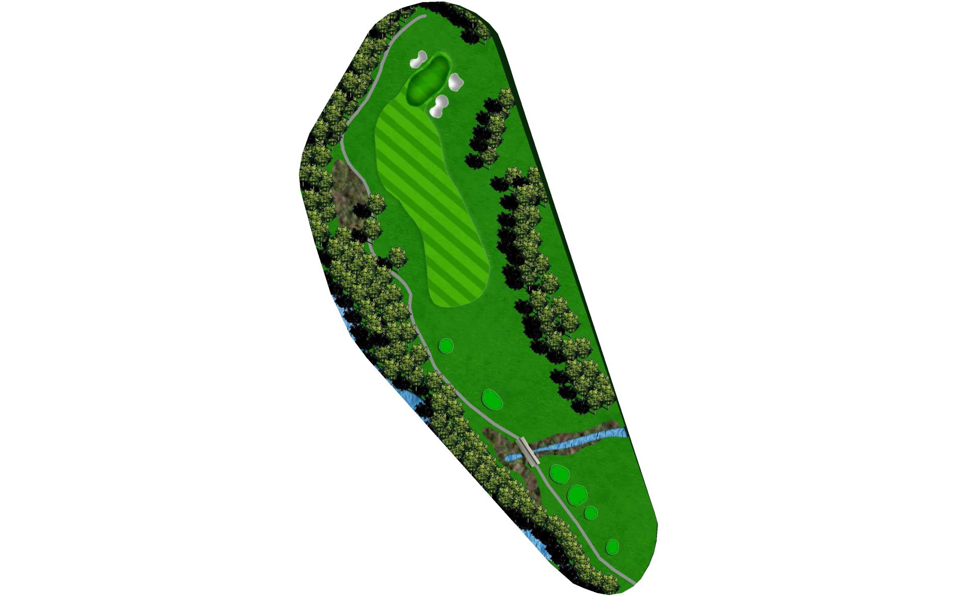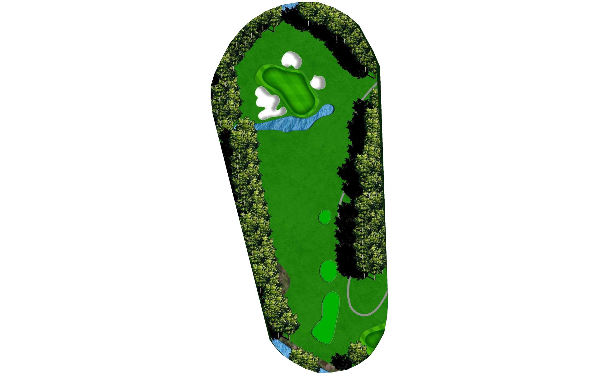 The third will make you feel like you’re playing the #3 ranked golf course in Tennessee, Spring Creek Ranch. It’s a par 3 with a multi-tiered green that’s guarded in front by a dry streambed. Bunkers protect all sides of this putting surface, one on the left and two on the right.