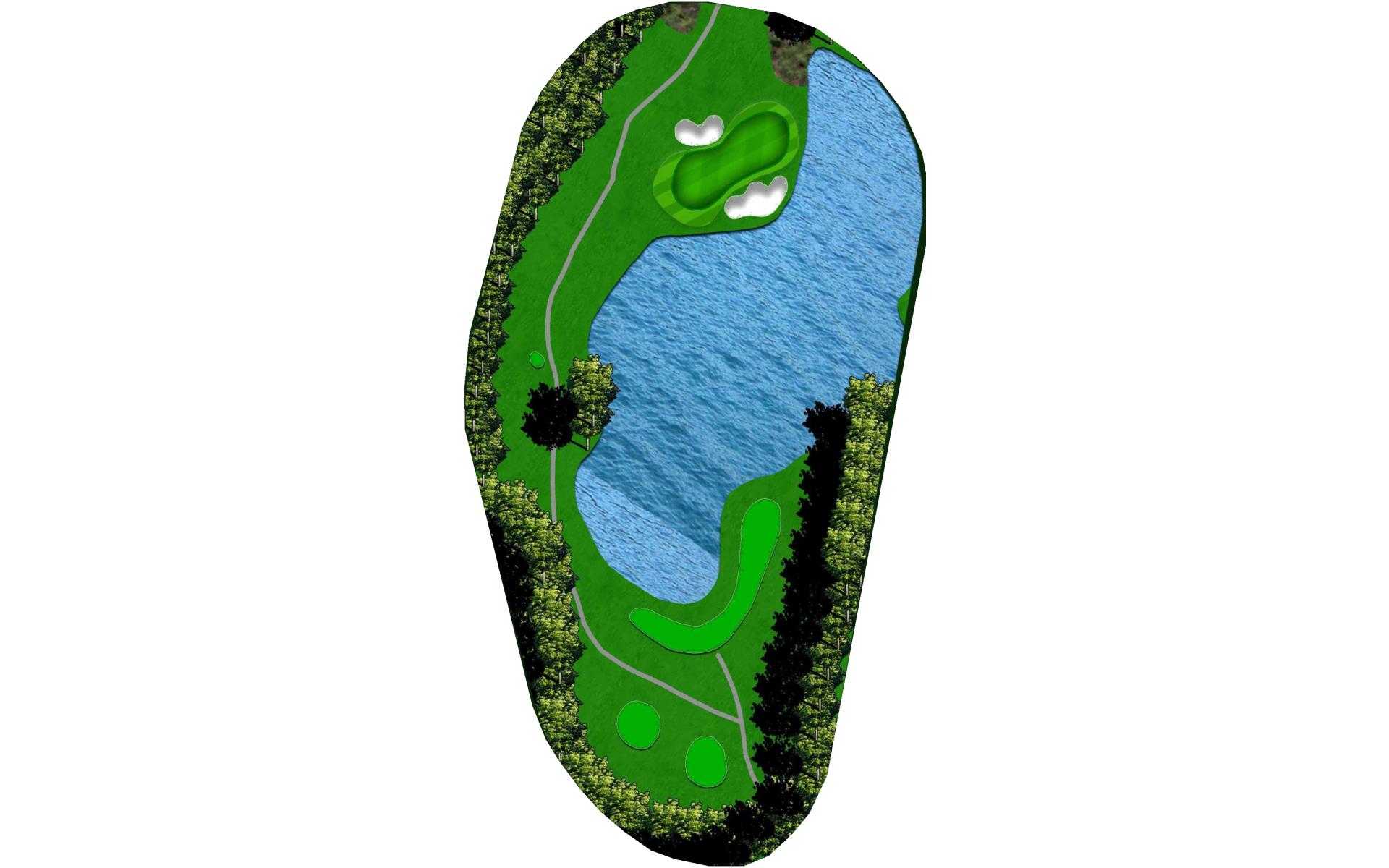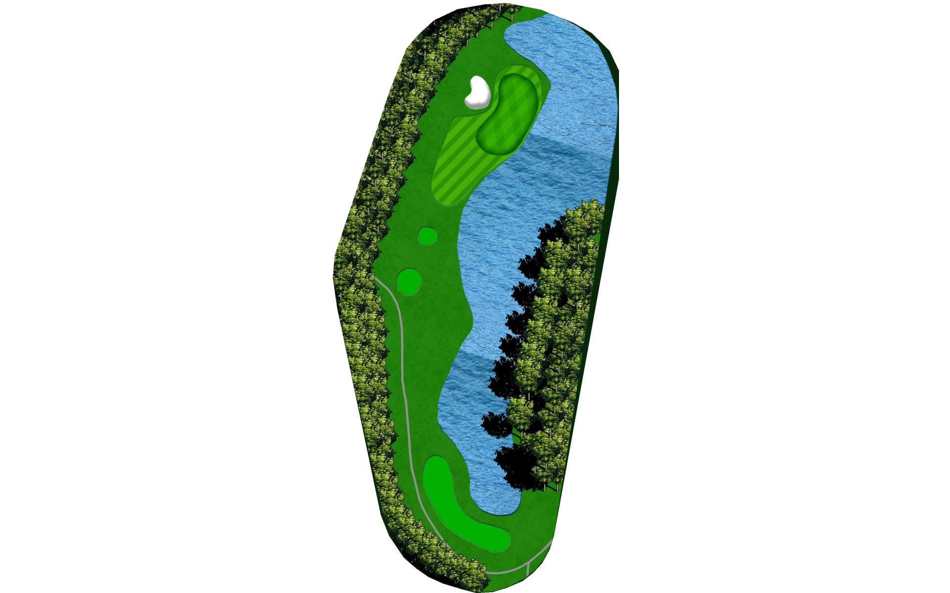 The 11th recreates the famous “Bear Trap” hole from the PGA Tour’s Honda Classic. This long par 3 plays entirely over water and features a greenside bunker on the left.