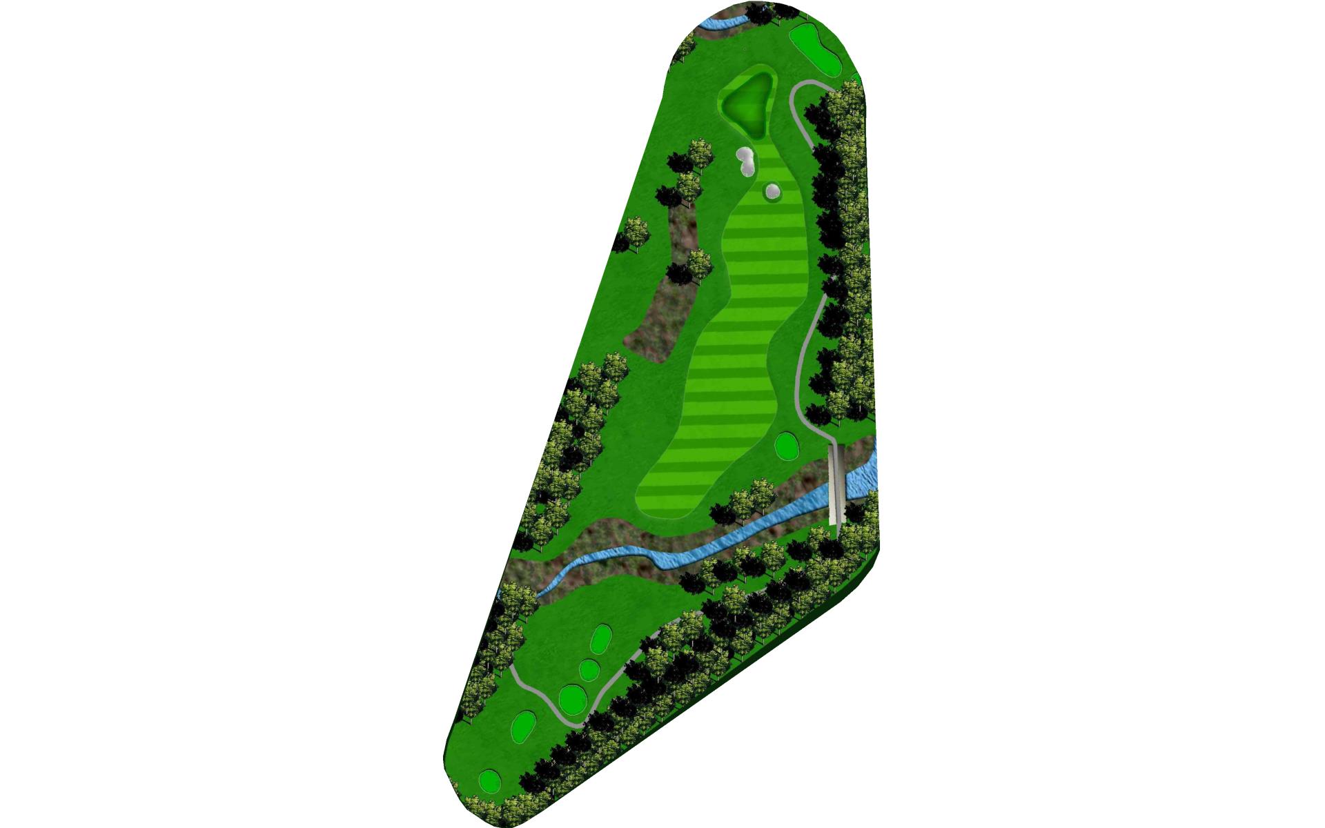This medium-length par 4 is designed to look and play like the 9th at Nevillewood, one of Pennsylvania’s finest golf courses. It plays slightly uphill to a wide fairway. The approach shots must carry three ponds that guard the front right side of the putting surface.