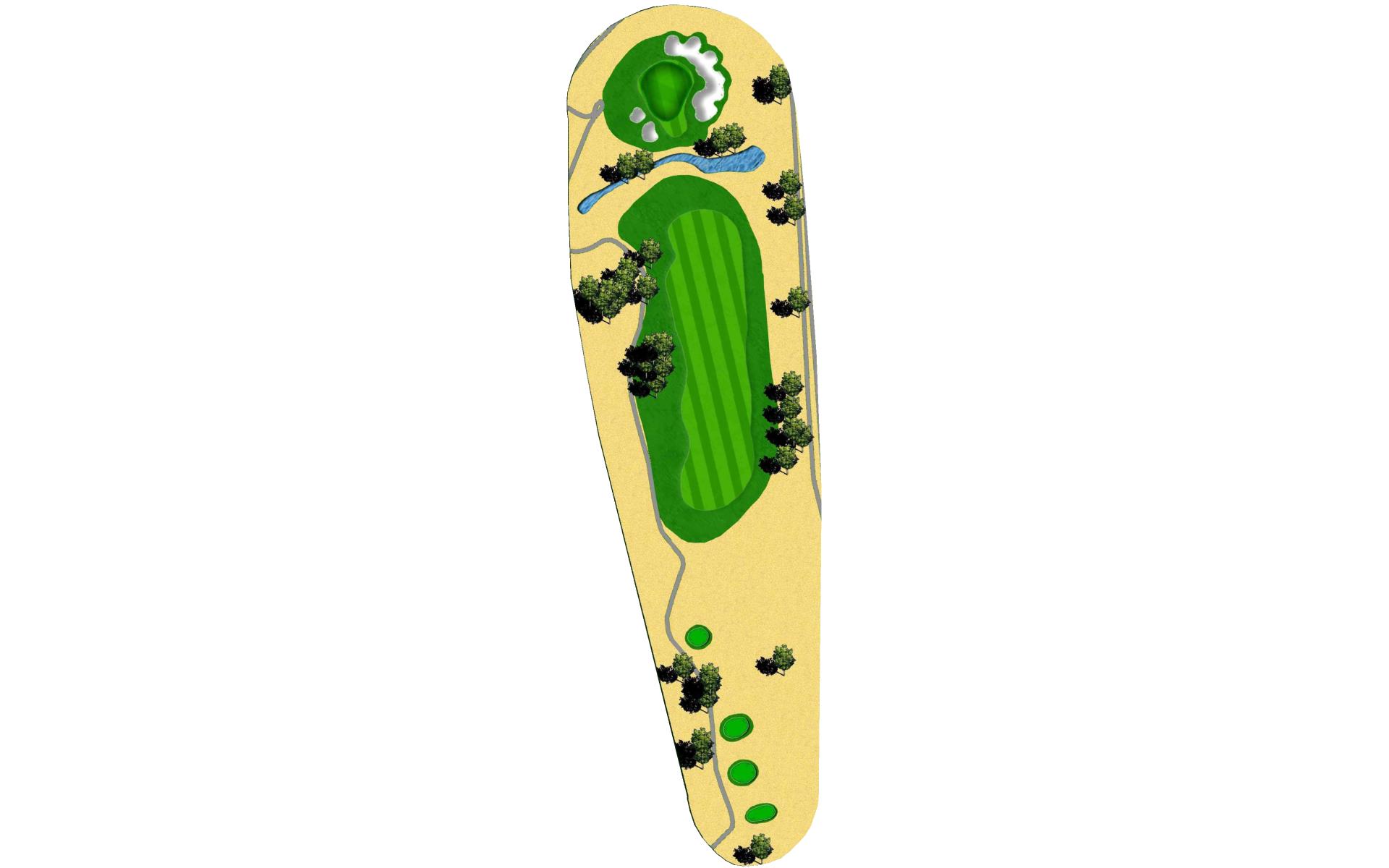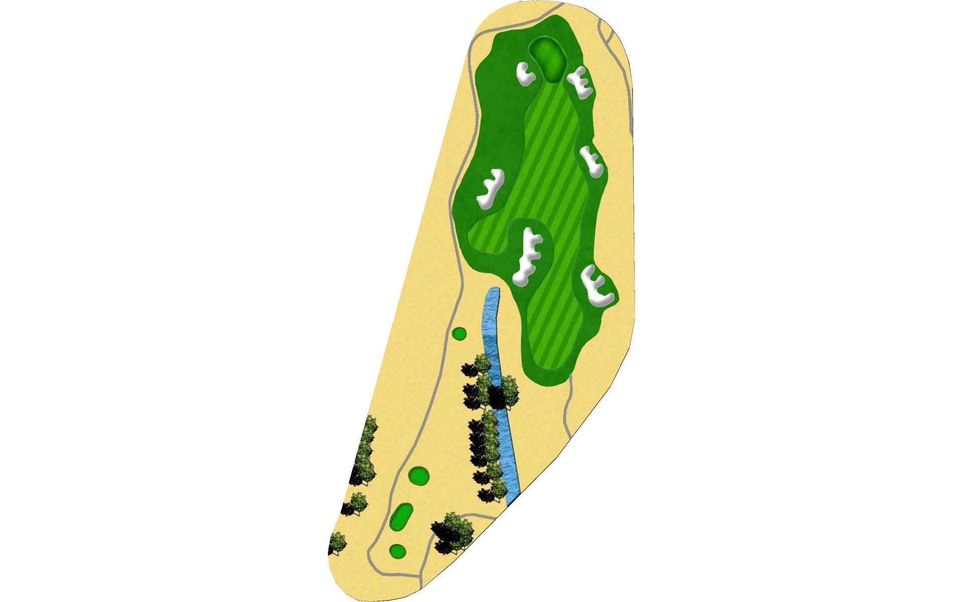 The sixth is a par 4 where everything falls to the right off the tee, so players will want to keep their shots down the left. Large mounds surround the back of the green where a left-to-right ball flight is the best attack.