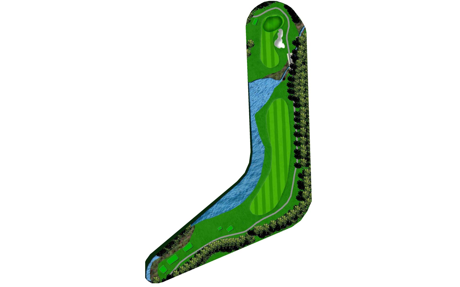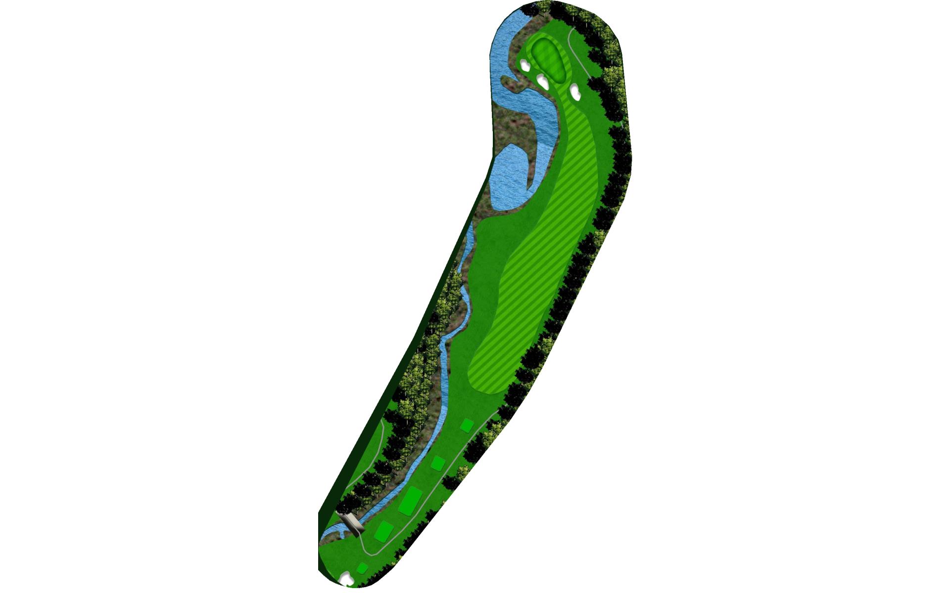 A good test, this long par 3 is over water and surrounded by bunkers.