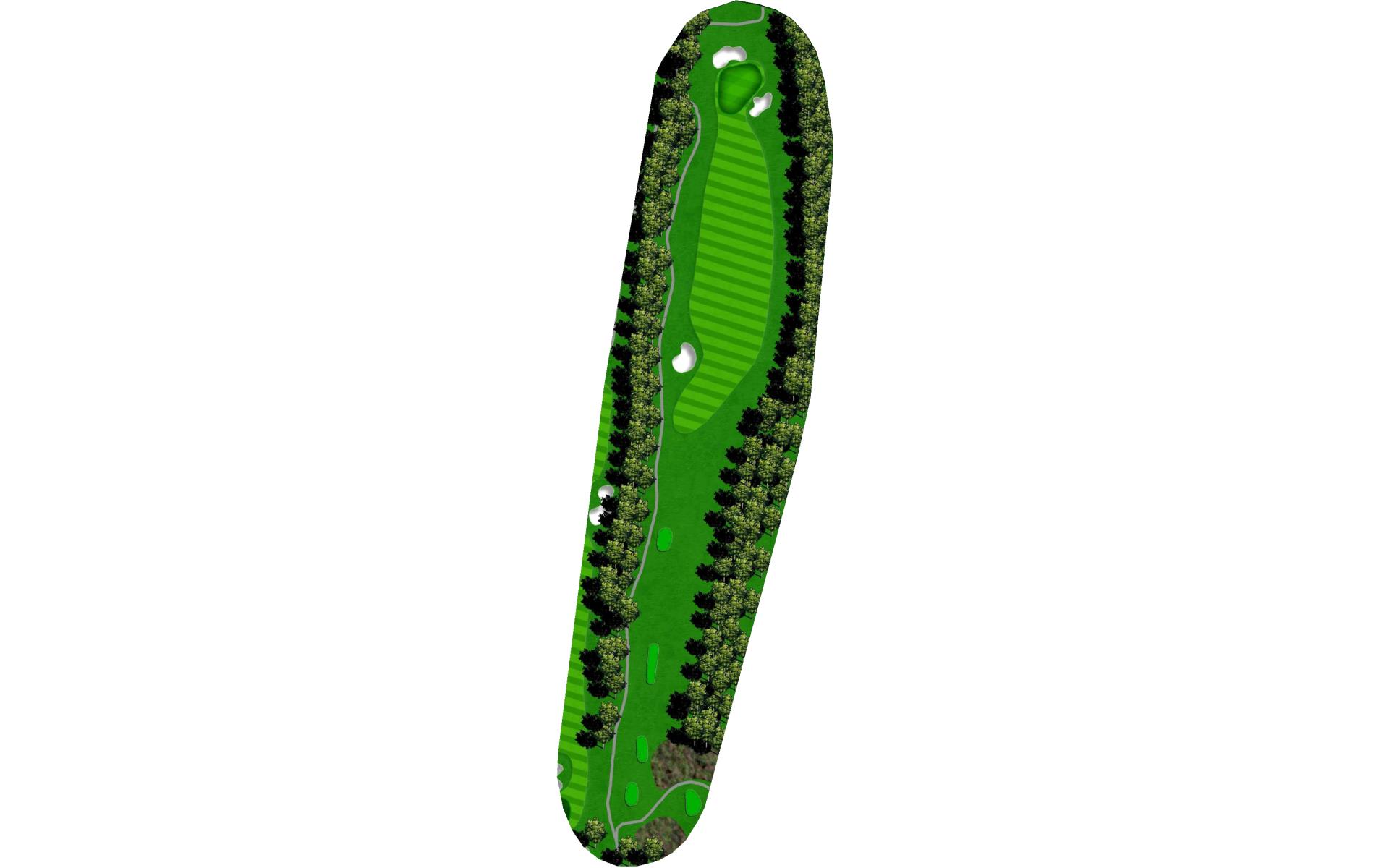 This straightaway par 3 plays over a creek. Tee shots should favor the left as there’s a severe slope on the right.