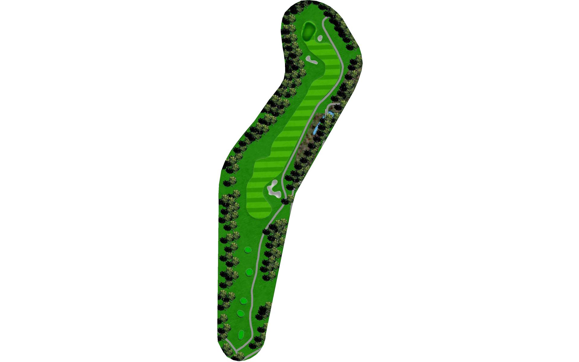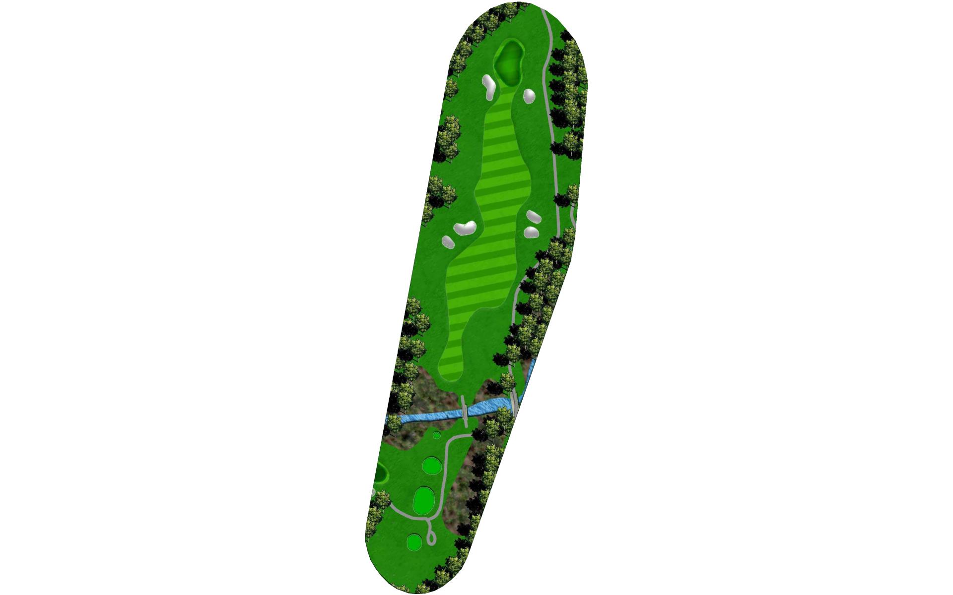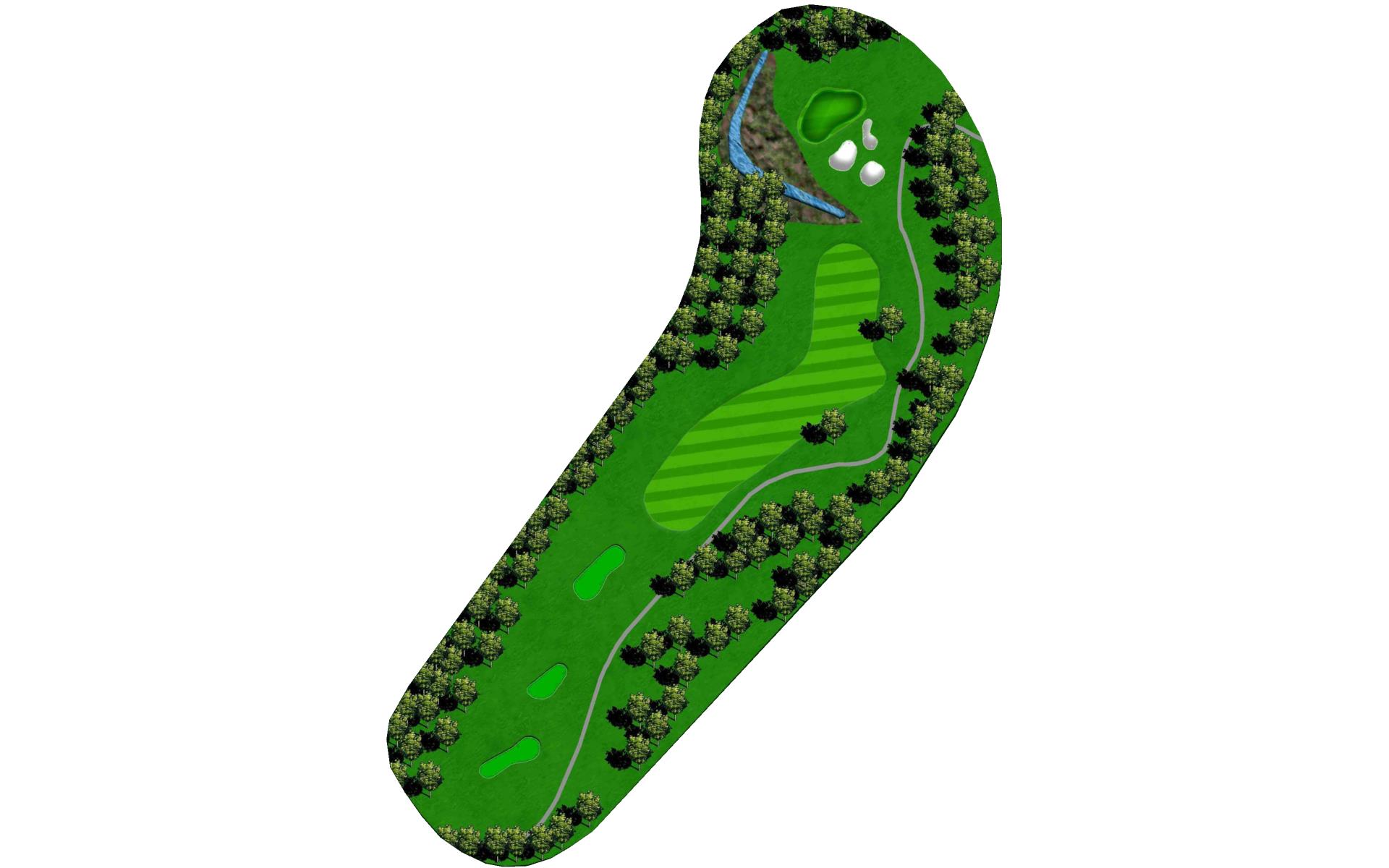 An accurate tee shot down the left side, avoiding the two fairway bunkers, is required on this par 5. On the second shot, players can either lay-up short of the creek about 100 yards from the green or try to attack the elevated green with a fairway wood. A penalty area left and three greenside bunkers will easily punish anything offline.