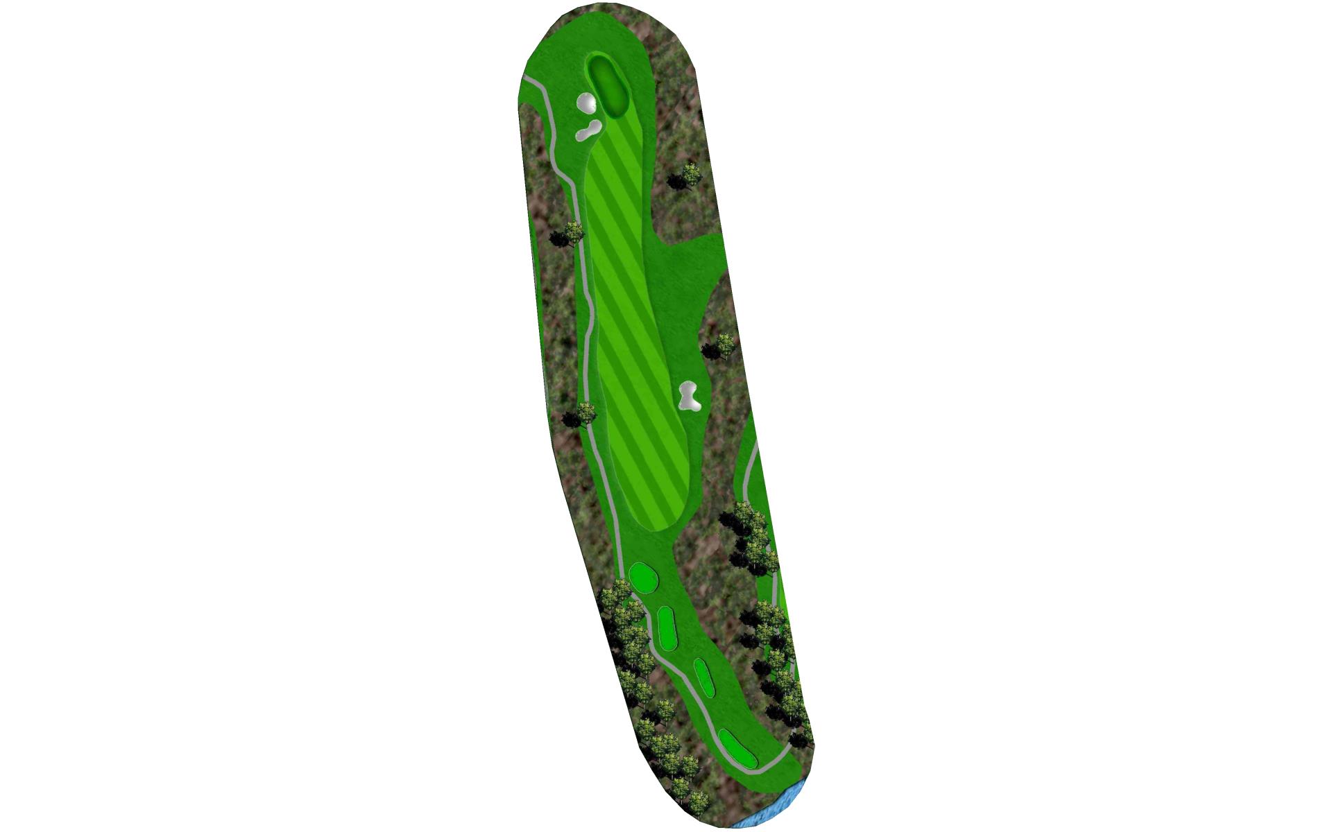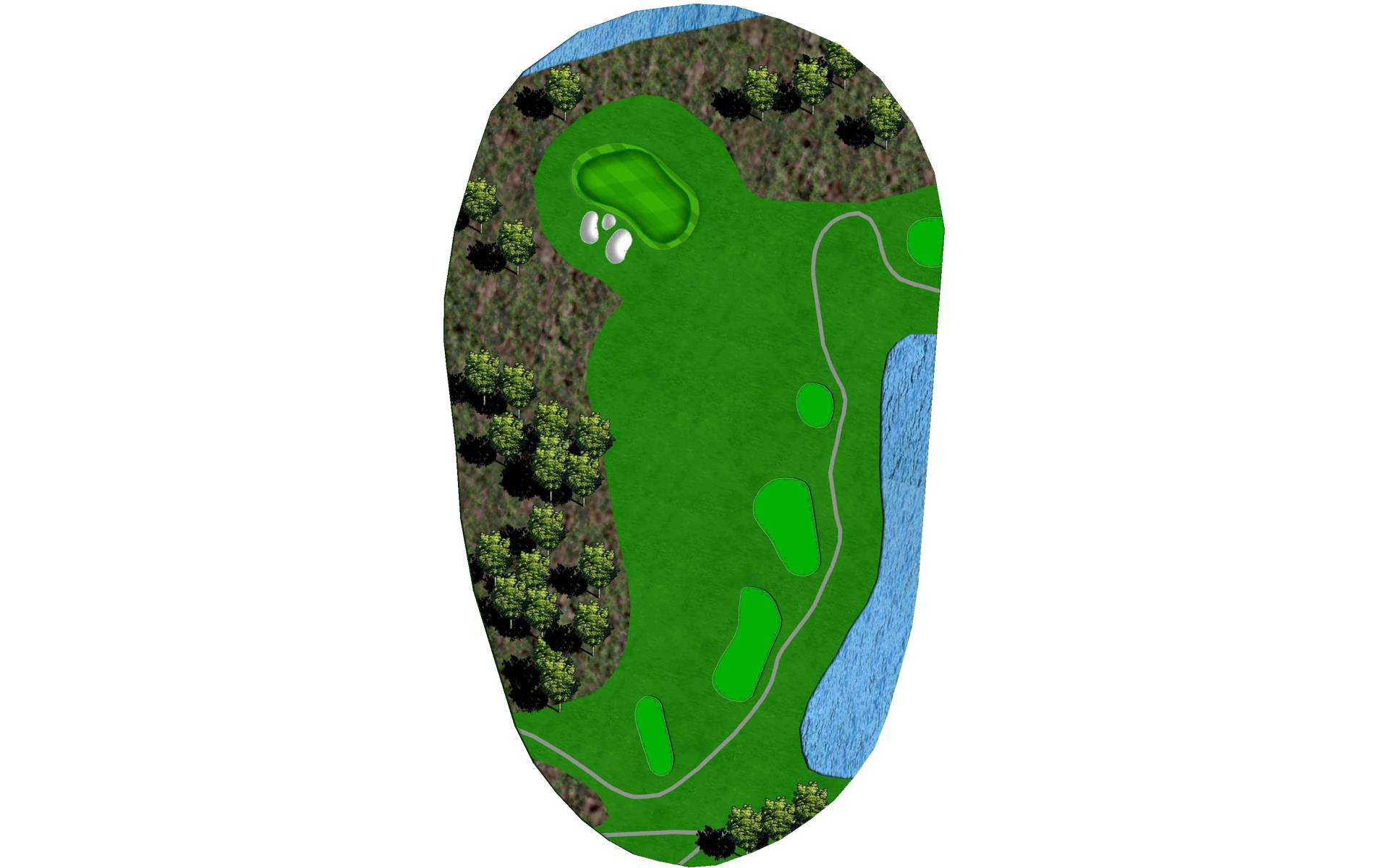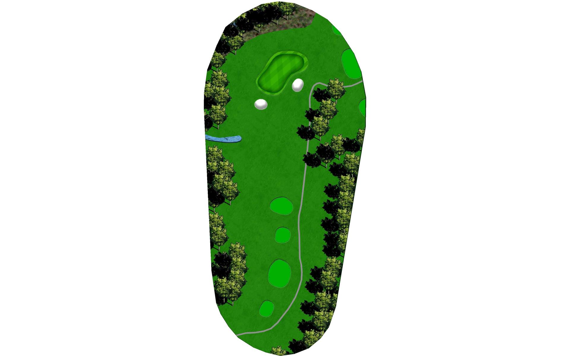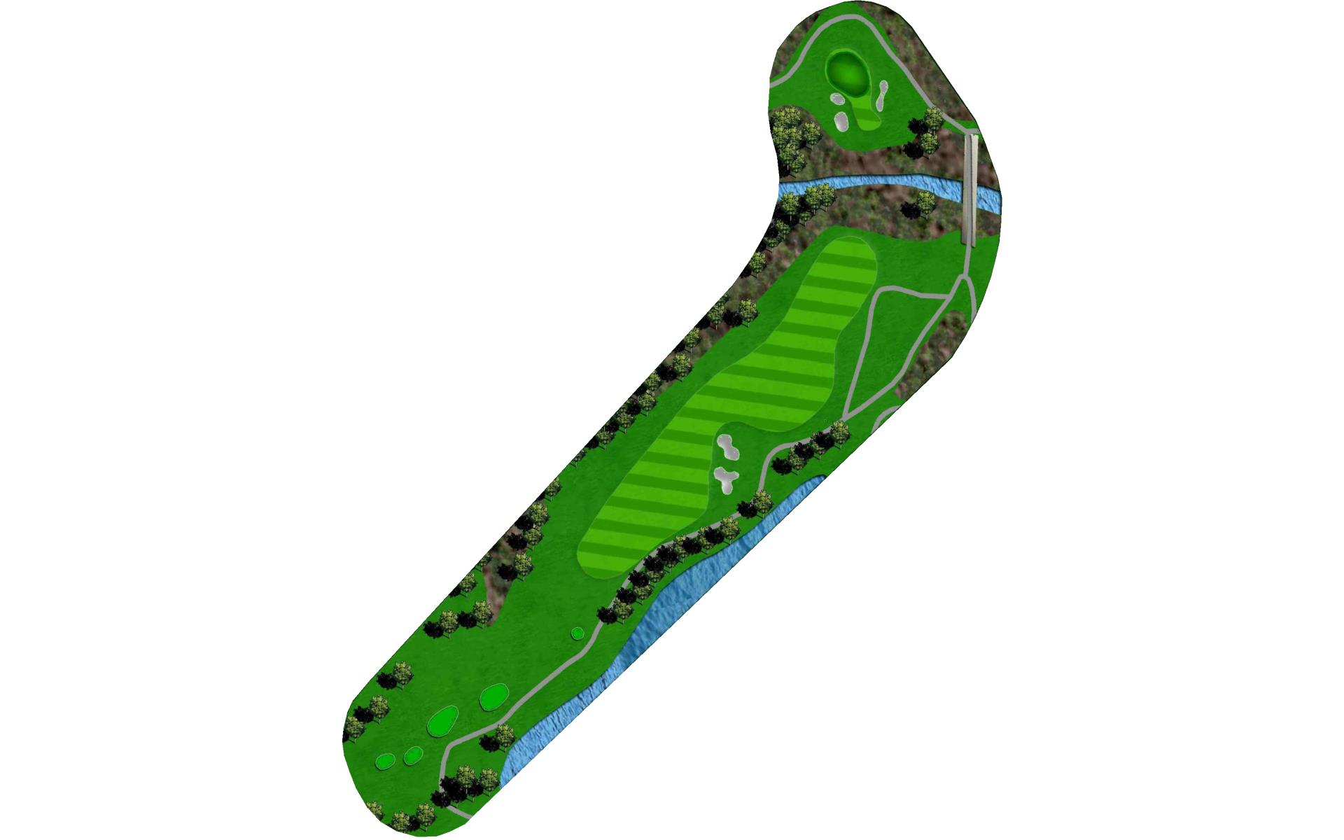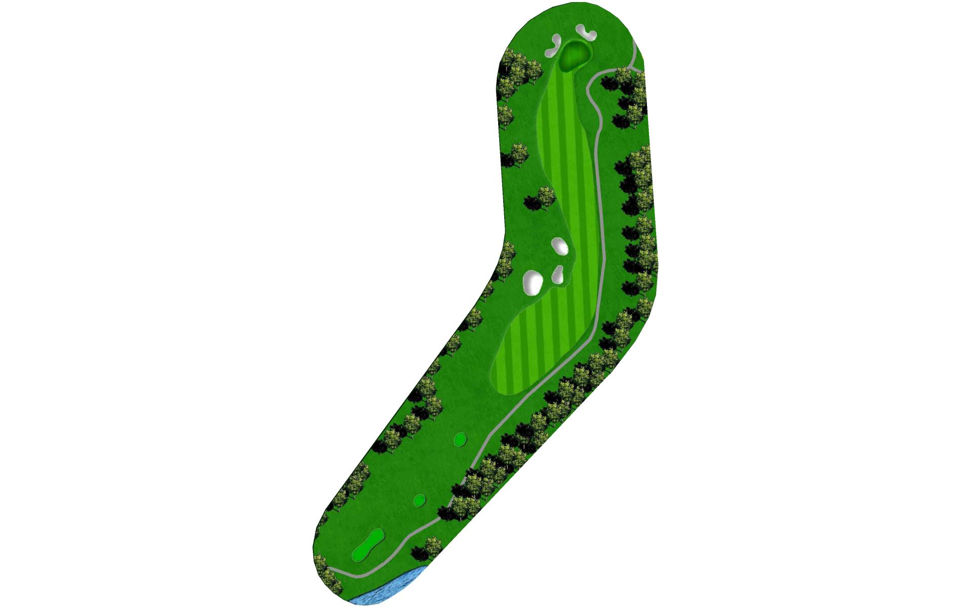 A penalty area left and bunker right guard the green on the picturesque par 3. On the putting surface, a large slope in the middle will challenge even the best putters.