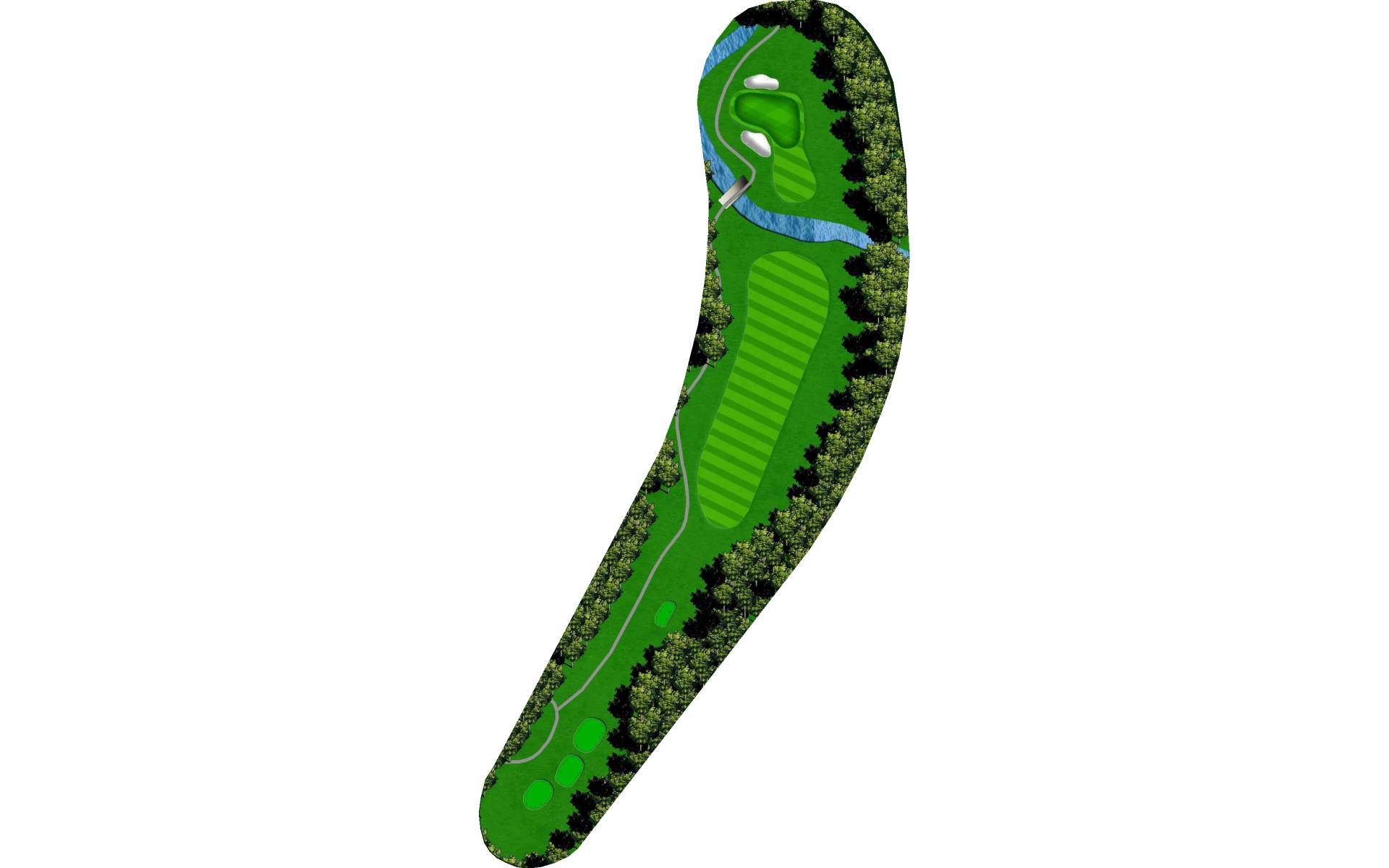 | The shortest par 5 but also the narrowest. An accurate, long drive down the right side opens up the horseshoe green for a go in two. |
