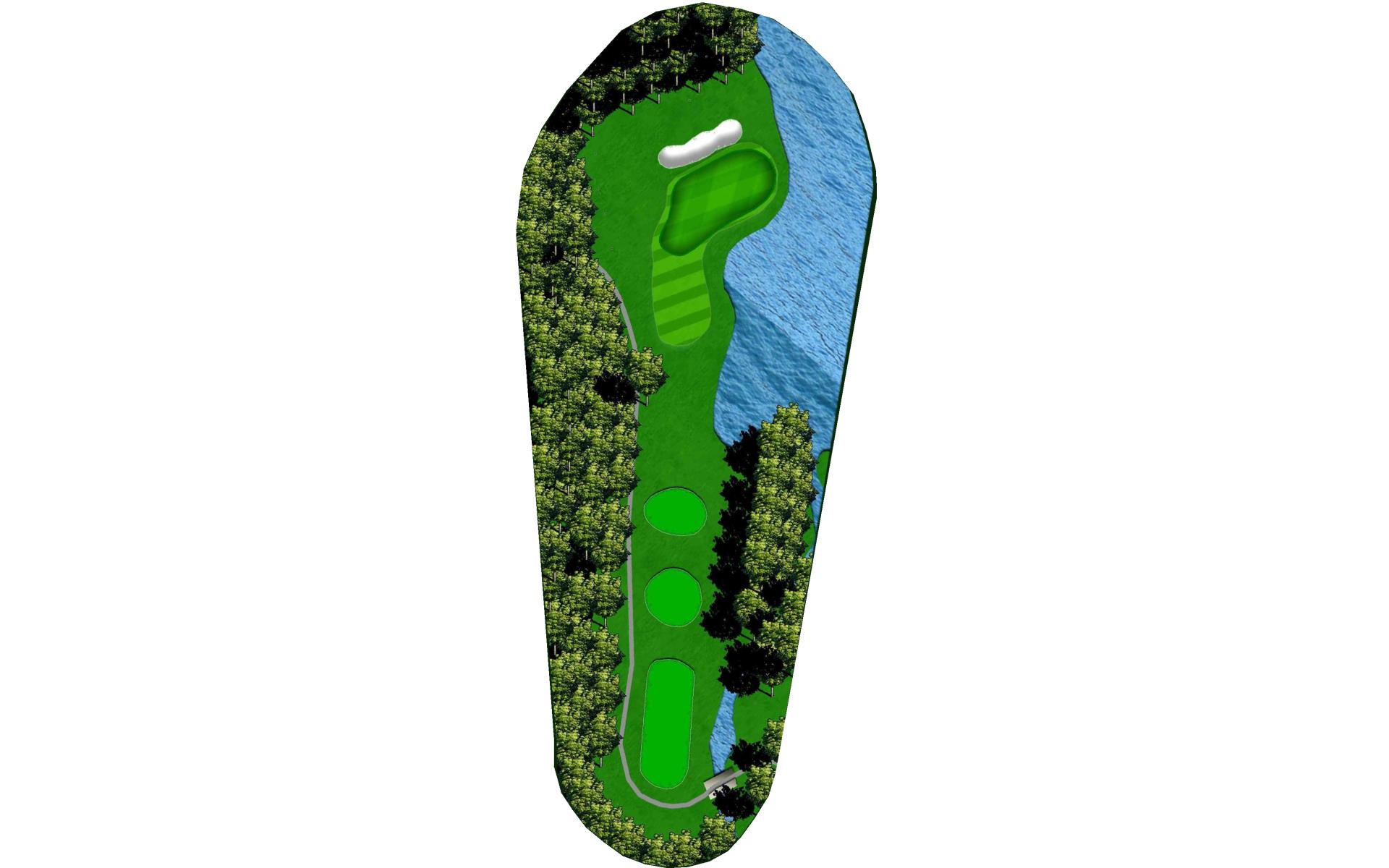 | This demanding par 3 places a premium on accuracy with water off the tee, an out of bounds area and a small green. |