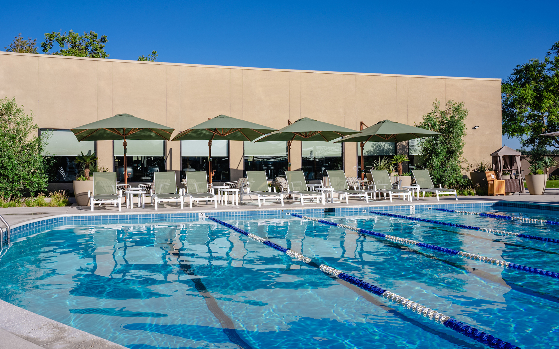 Splash and play in our newly renovated pool area with a heated Junior Olympic pool, wading pool, junior swim teams, and lessons. Enjoy the upgraded pool bar with chic awnings, new tiles, sleek countertops, and state-of-the-art TVs. Relax on our revitalized deck with new loungers, umbrellas, and lush landscaping.