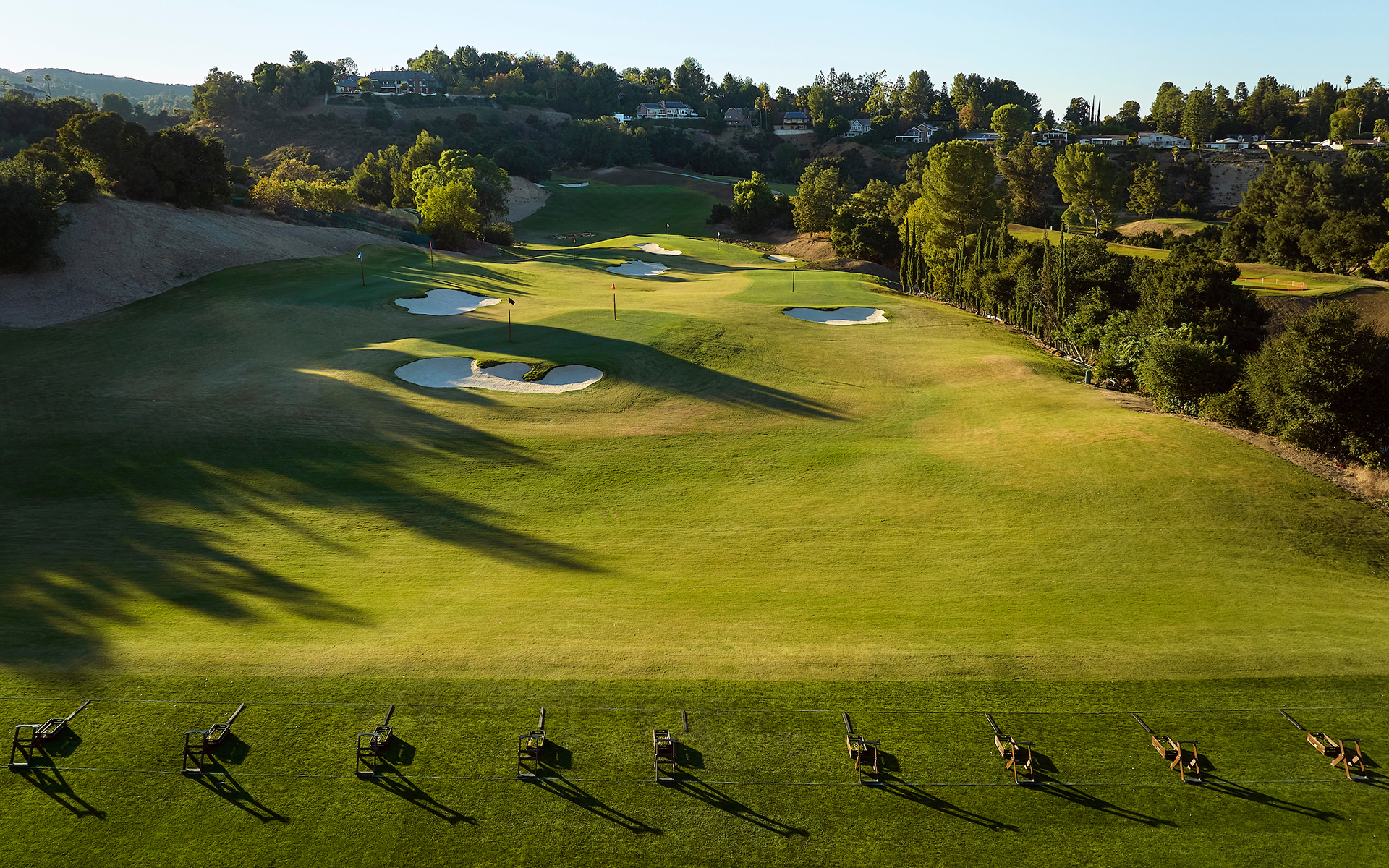 Mulholland Hills' brand-new practice facility stands as the premier training ground in the San Fernando Valley and one of Southern California's finest. The state-of-the-art range boasts an expansive, leveled, and re-grassed driving range tee, improved turf conditions, increased stall capacity, widened landing areas for enhanced target options, and a permanent synthetic turf tee line at the rear to preserve natural turf during peak periods.