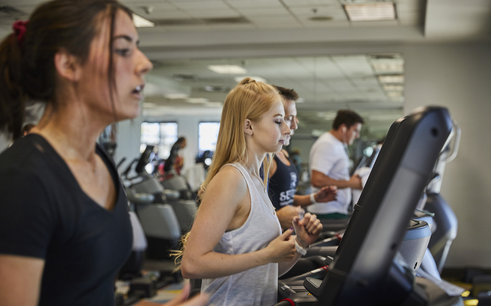 The Fitness Center is equipped with treadmills, row machines, arc trainers, ellipticals, air striders, upright bikes, recumbent bikes, Cybex machines, a dumbbell rack 5-70 lbs, a Roman chair, a hyperextension machine, a kettlebell/medicine ball tower.