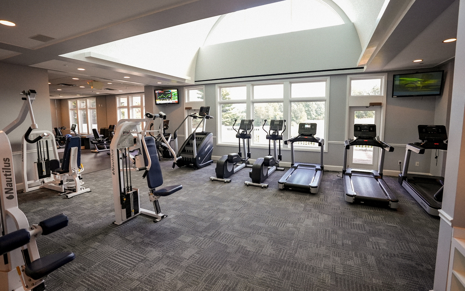 Our 1,600 square foot fitness area includes state of the art equipment including cardiovascular and weight training products as well as Nautilus Nitro strength training. Equipment Includes: Integrity DX Cross-Trainers, Powermill X Console, Integrity, DX Recumbent Bike, Integrity DX Treadmills, Group Row, Group, Exercise Bike, Total Body Arc Trainer, SYNERGY 90 Cable, Signature Smith Machine, Multiple Signature Utility Benches, free weights, kettle bells and much, much more!