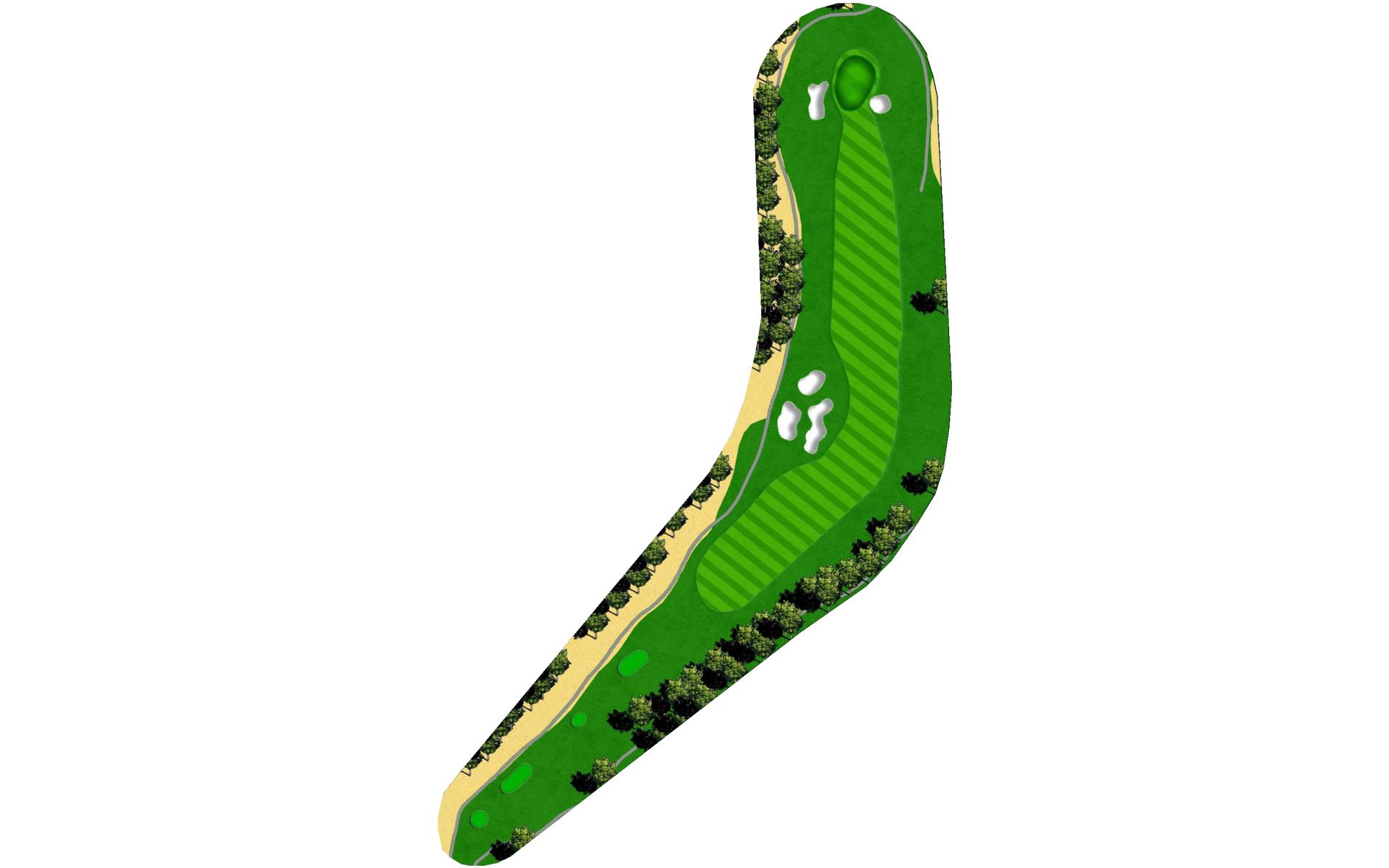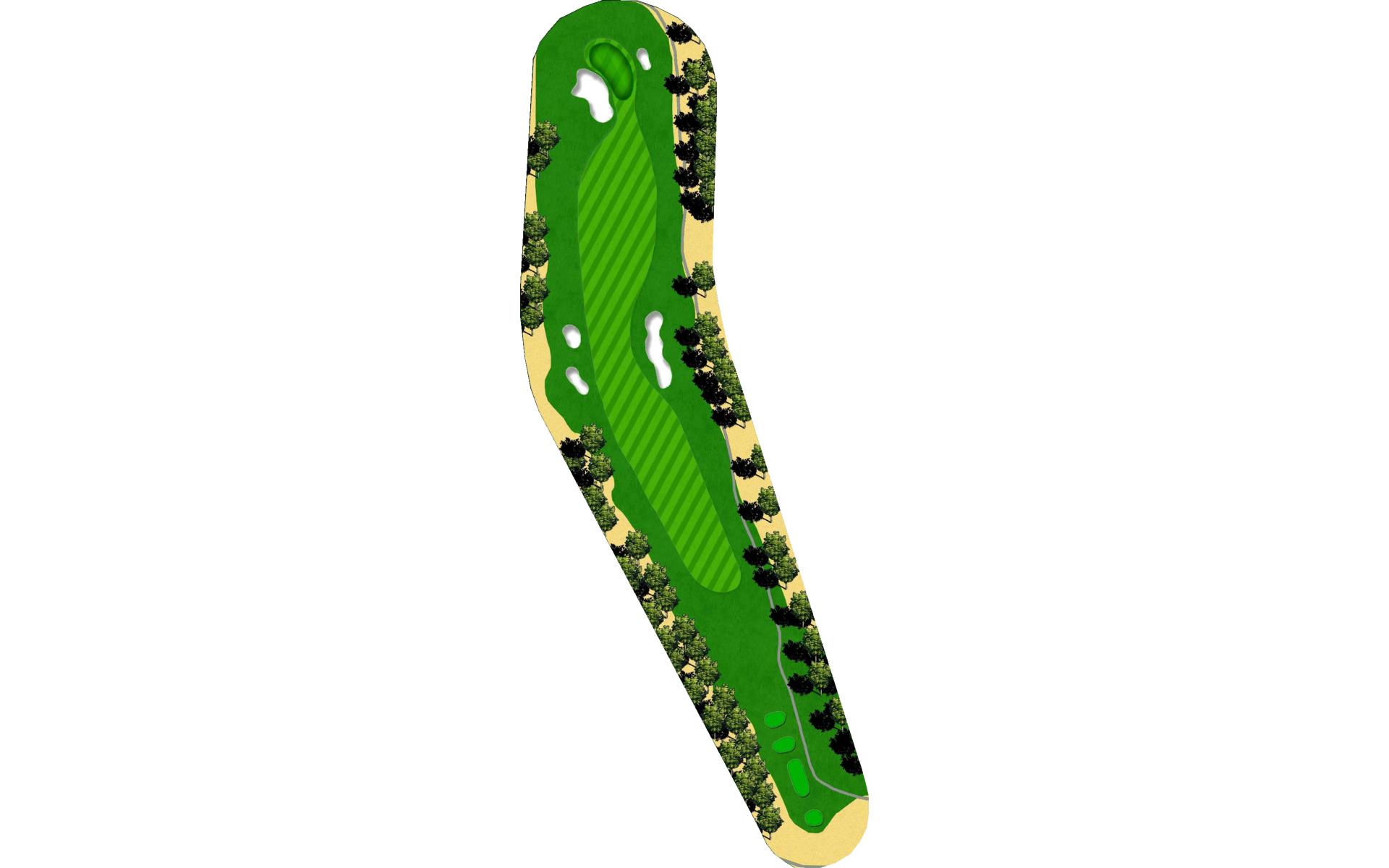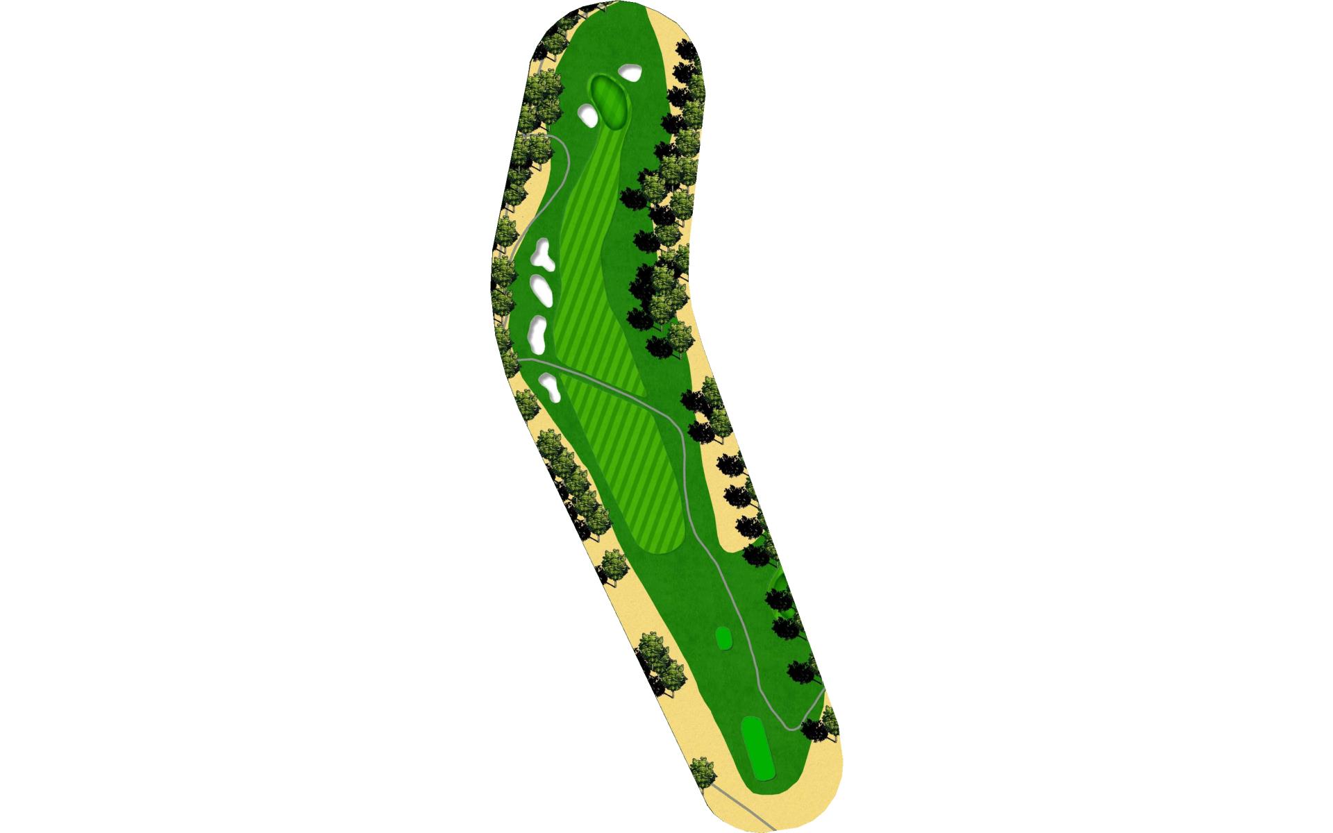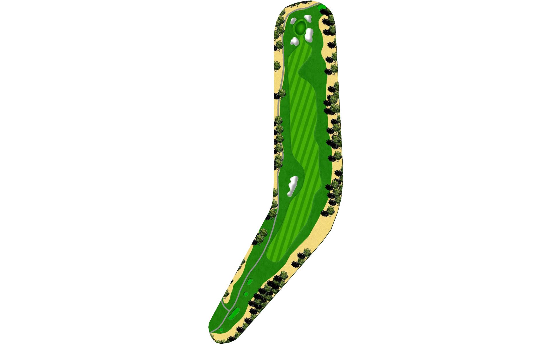A slight dogleg left with out-of-bounds on both sides. Bunkers at the dogleg force an accurate tee shot. A well-positioned second shot will let you decide to go for the pin or settle for the center of this flat, small green protected by bunkers in front.
