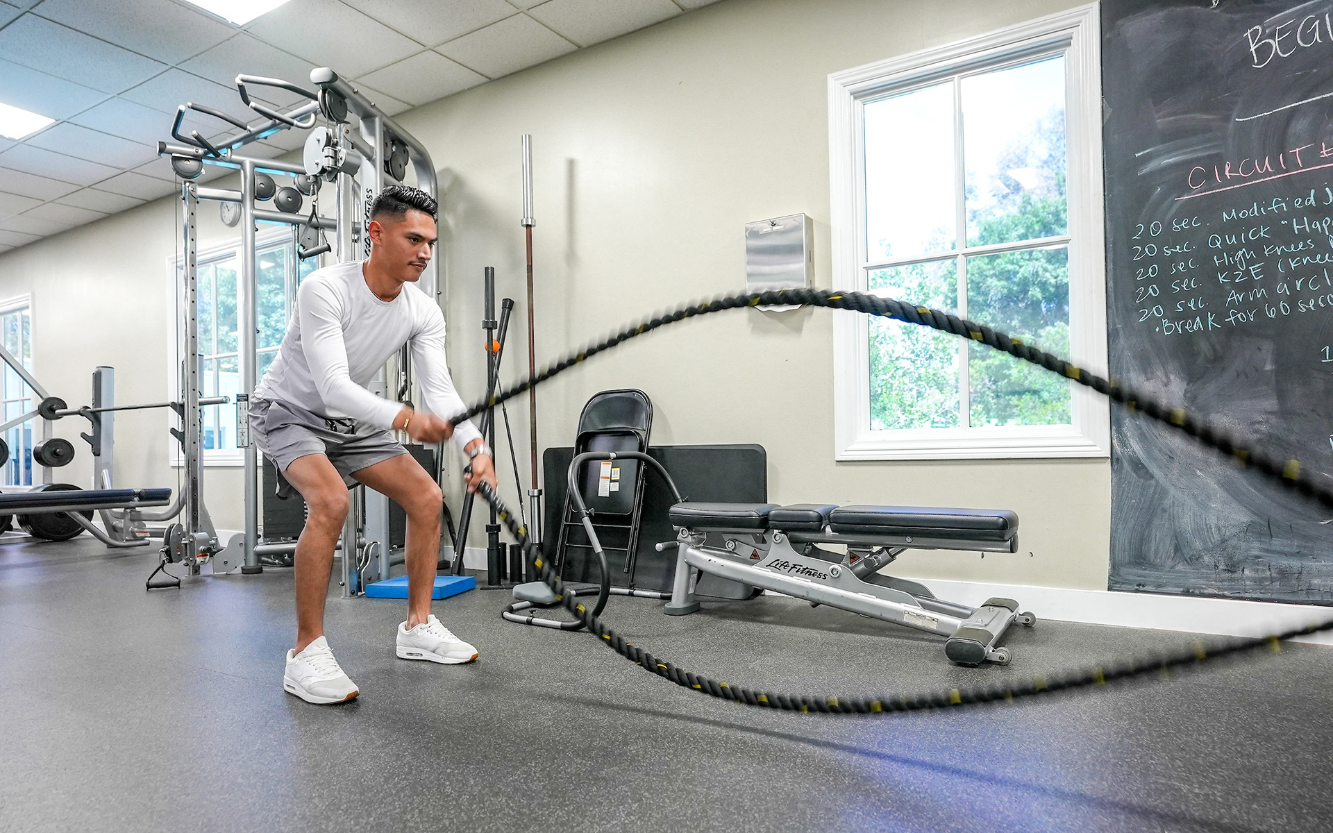 - Full array of circuit training equipment featuring double bay TRX, Battle Ropes, Resistant Bands, Slam Balls, Medicine Balls, 360 Pro Step units and Outdoor Fitness Platform.