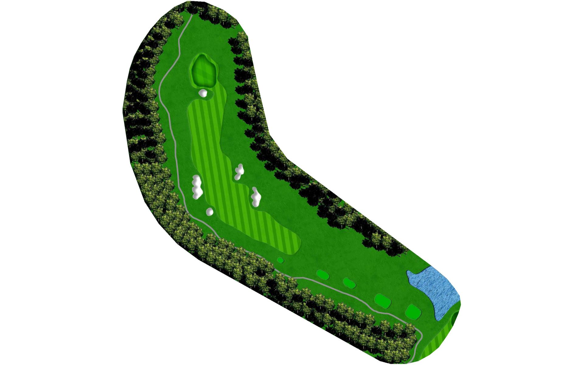 A short but difficult par 3, well bunkered with water to the left side of the green. A severely sloping green will require an accurate shot to stay below the hole. Proper club selection is key here, as overhit shots will be severely penalized over the green.