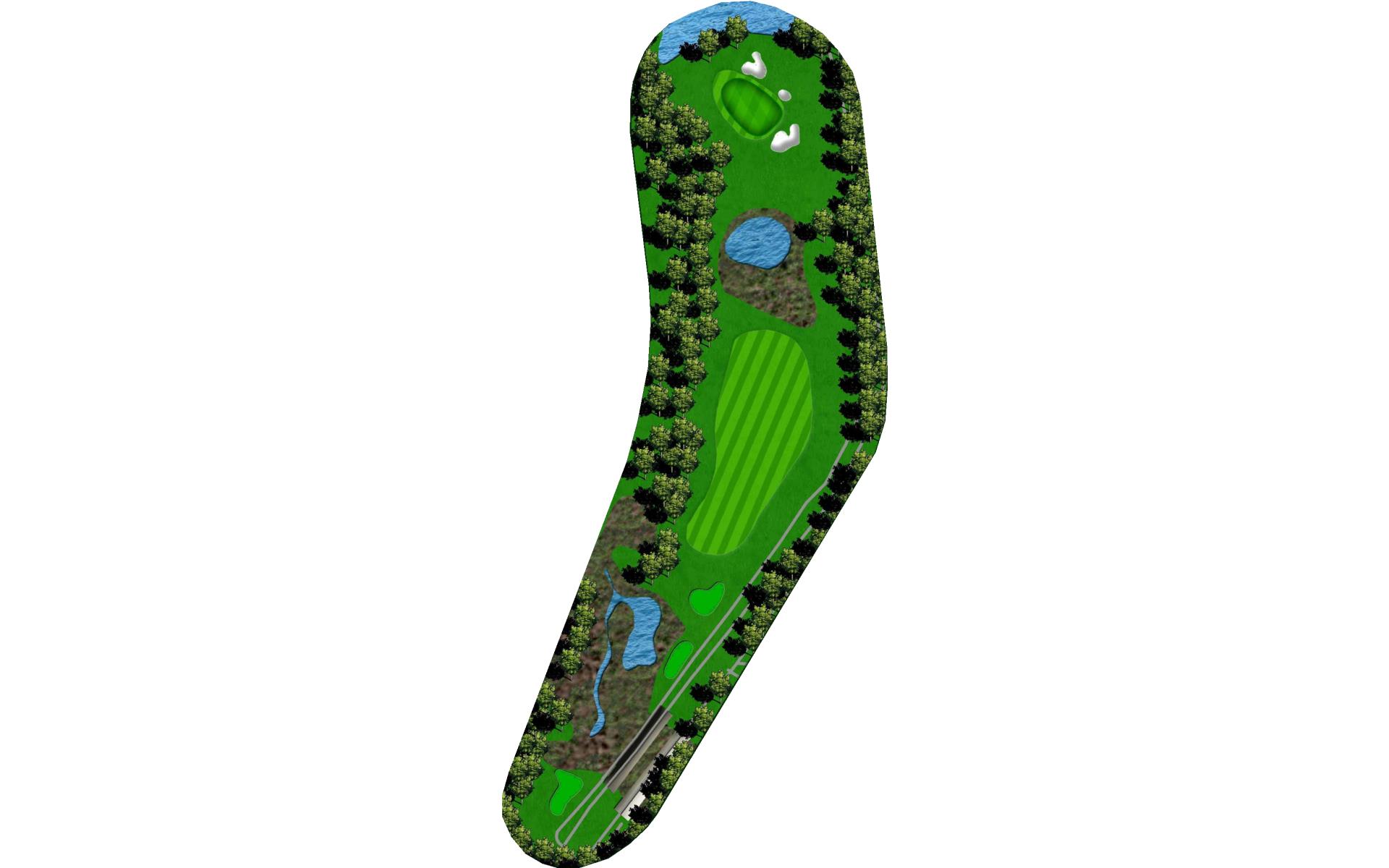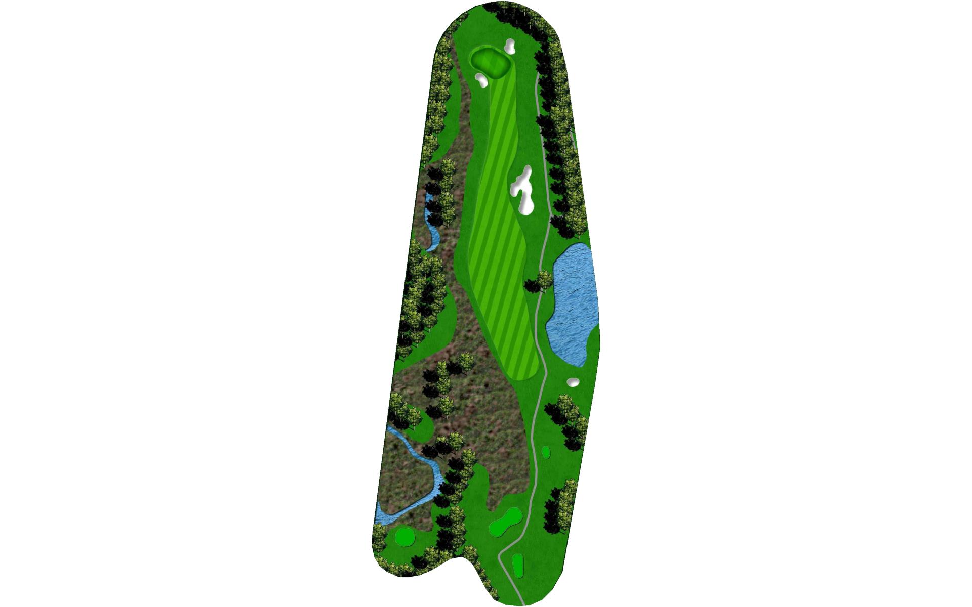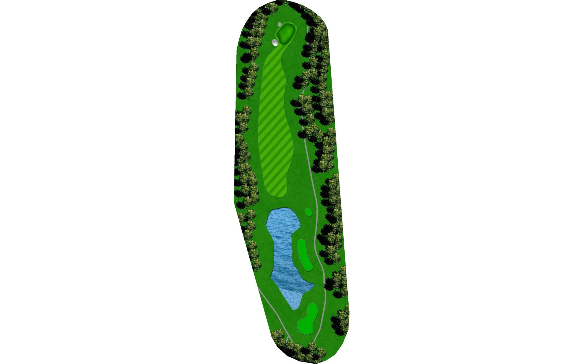 Shorter Dog Leg Right PAR 4. Possible to drive green with big tee shot from the forward tee box. Longer hitters can shorten this hole by hitting their drive down the right side and cutting the corner with a left to right ball flight. For the average player, a tee shot that favors the middle of the fairway will give a good angle into the green for the approach shot.