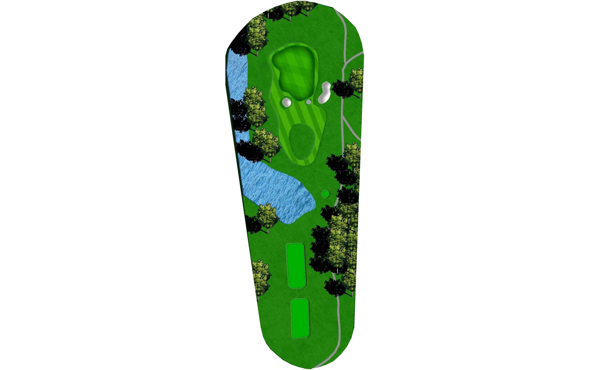 | The green on "Falcon Peak" is extremely elevated and slight misses will run off and leave tough up and downs. Hit the green and you should have a good opportunity at birdie. |