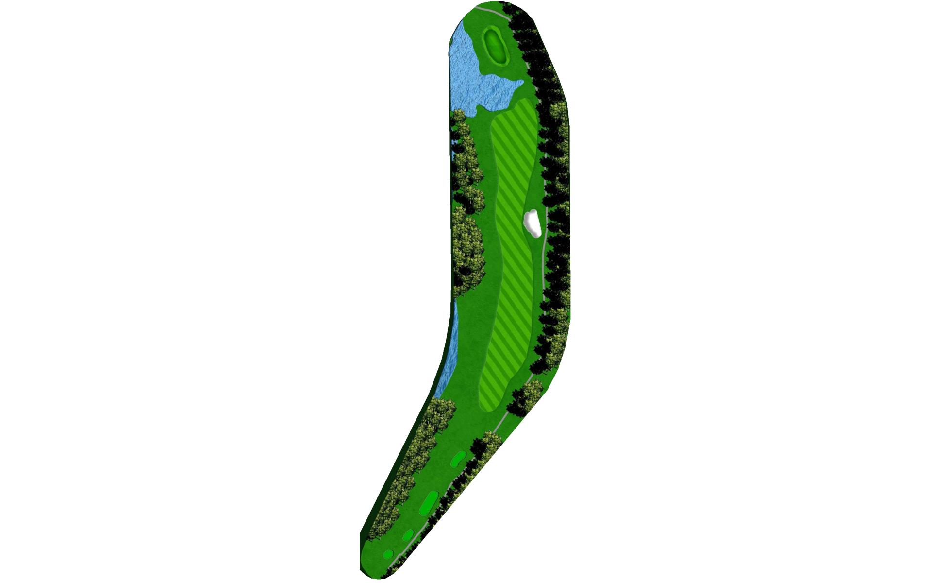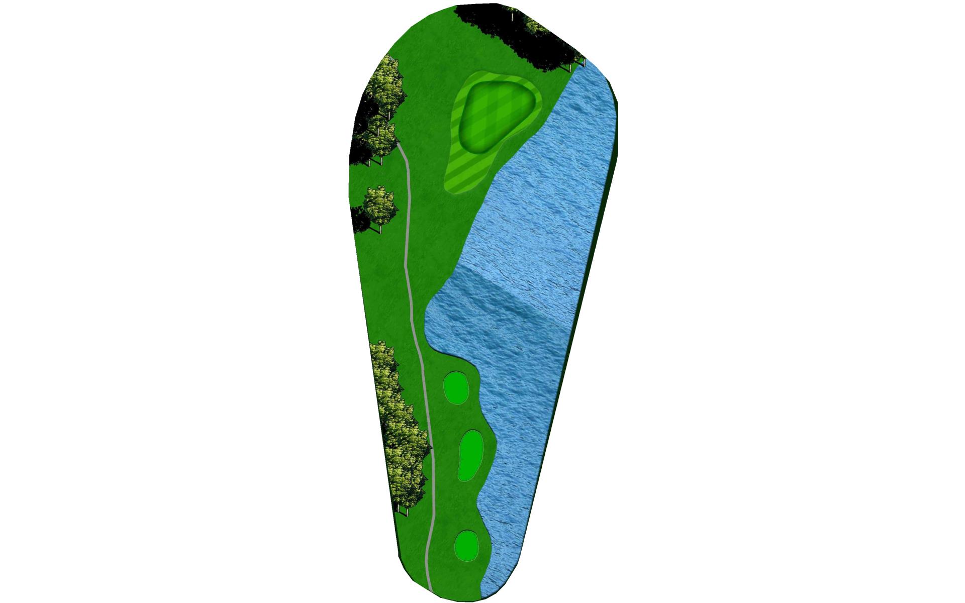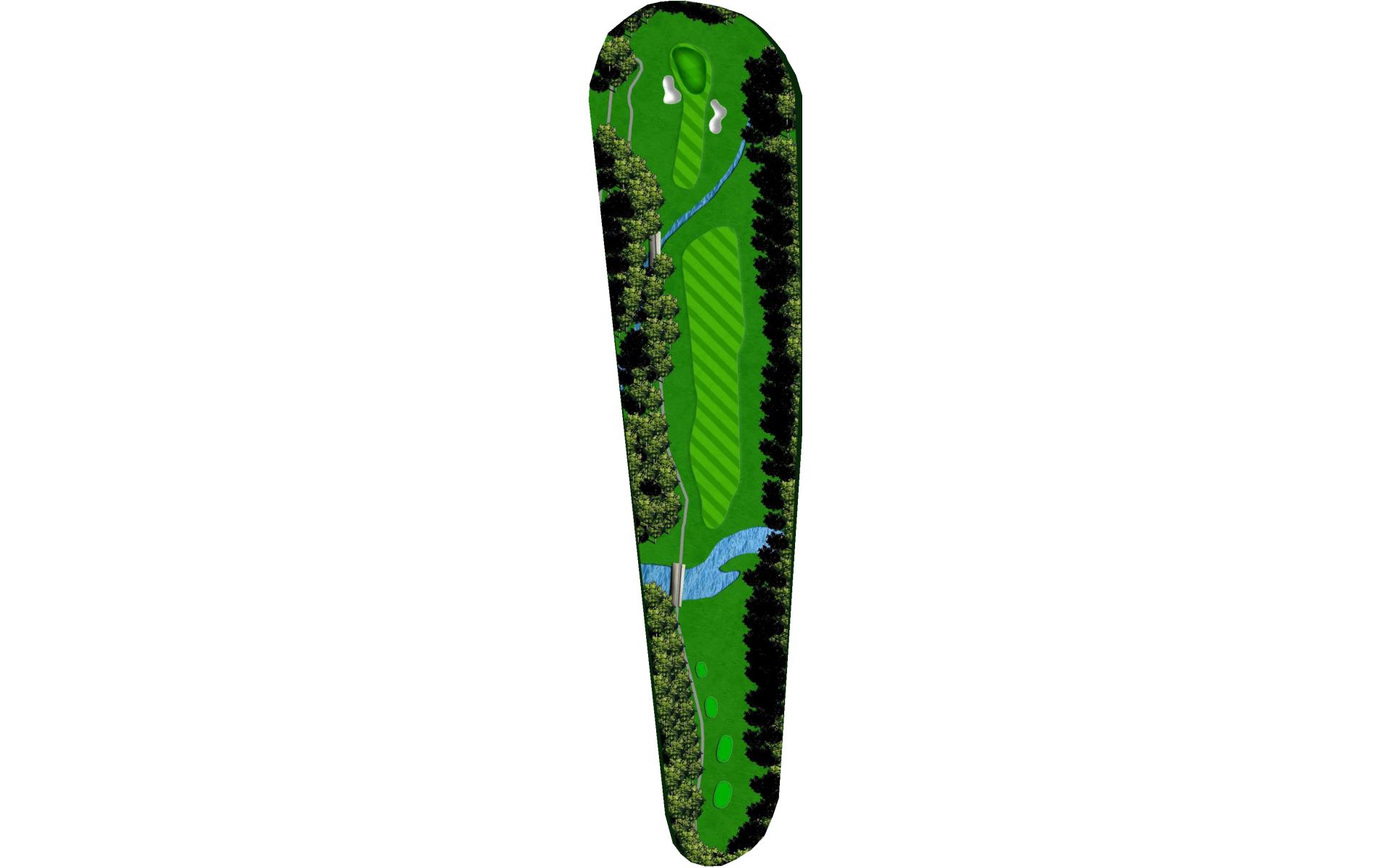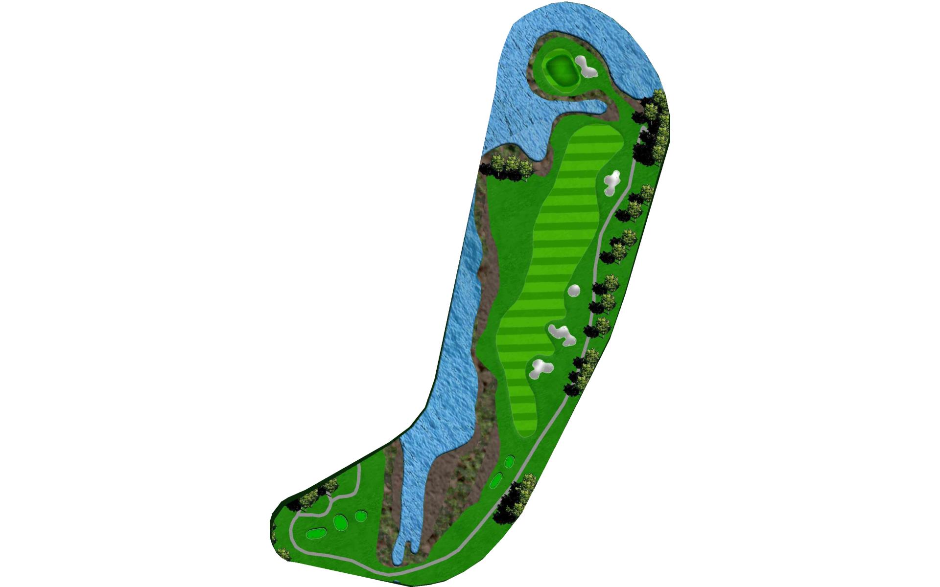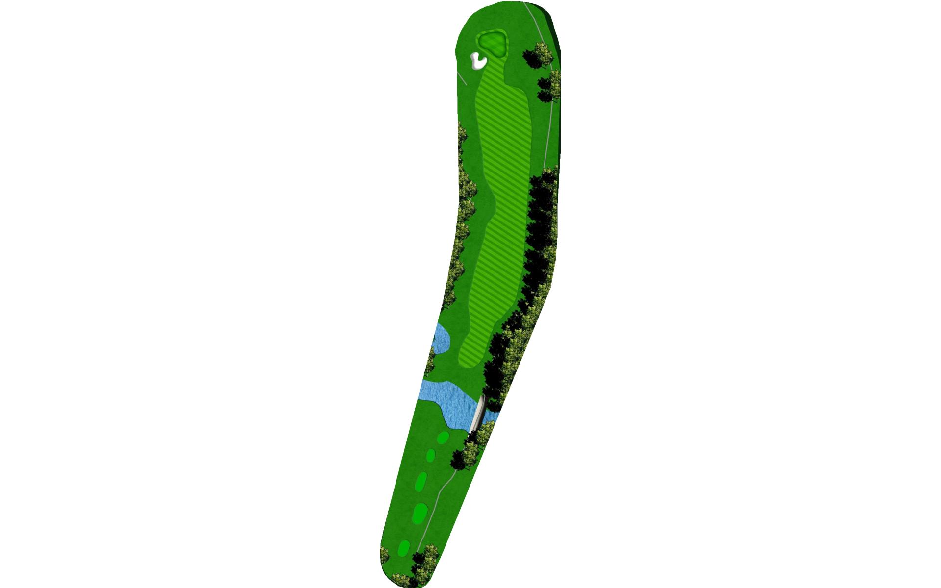 This well guarded green is best played by mid to long iron to the middle of the green. The green has false front and is surrounded by water and penalty area.