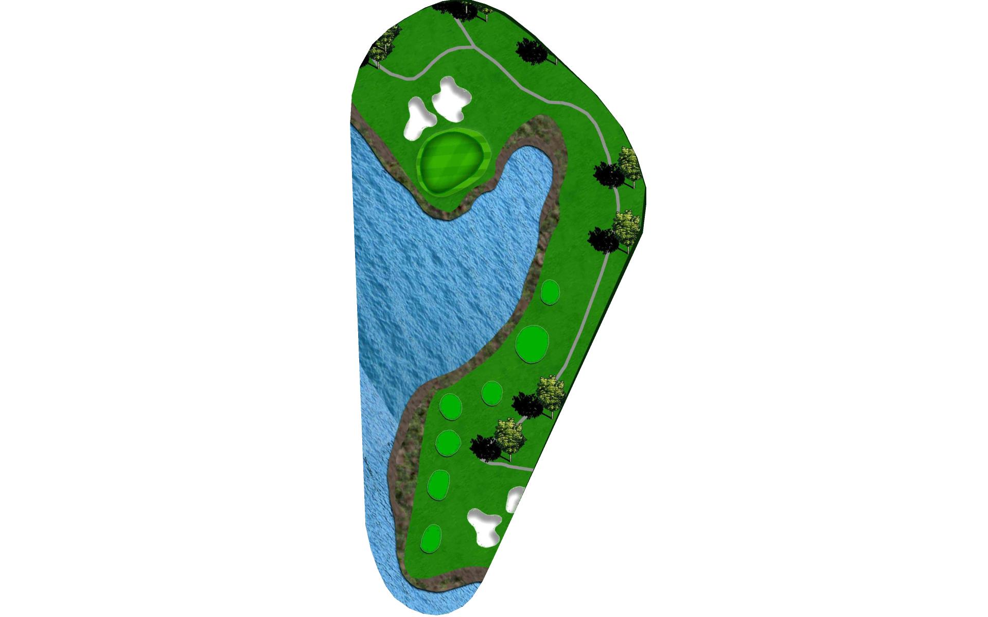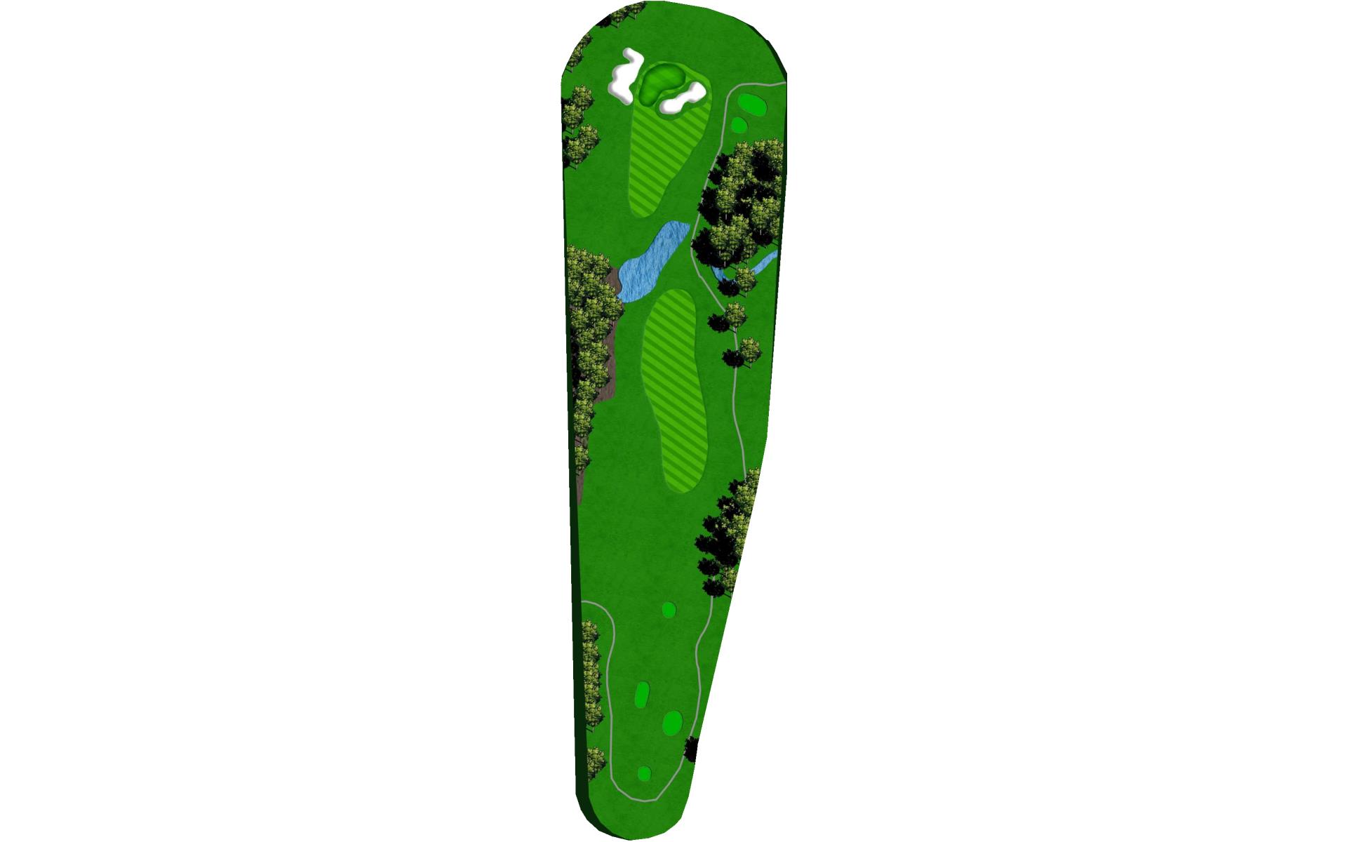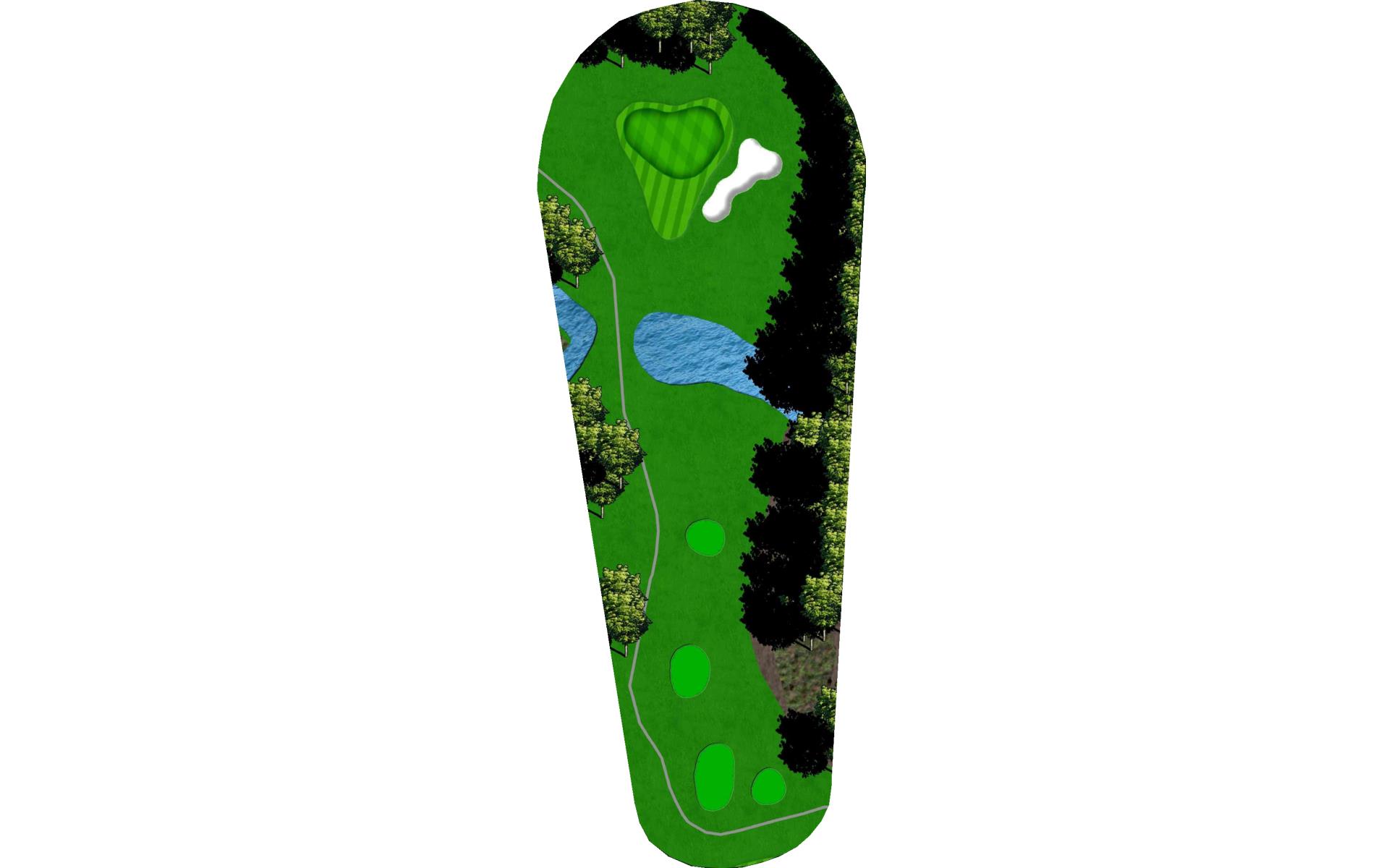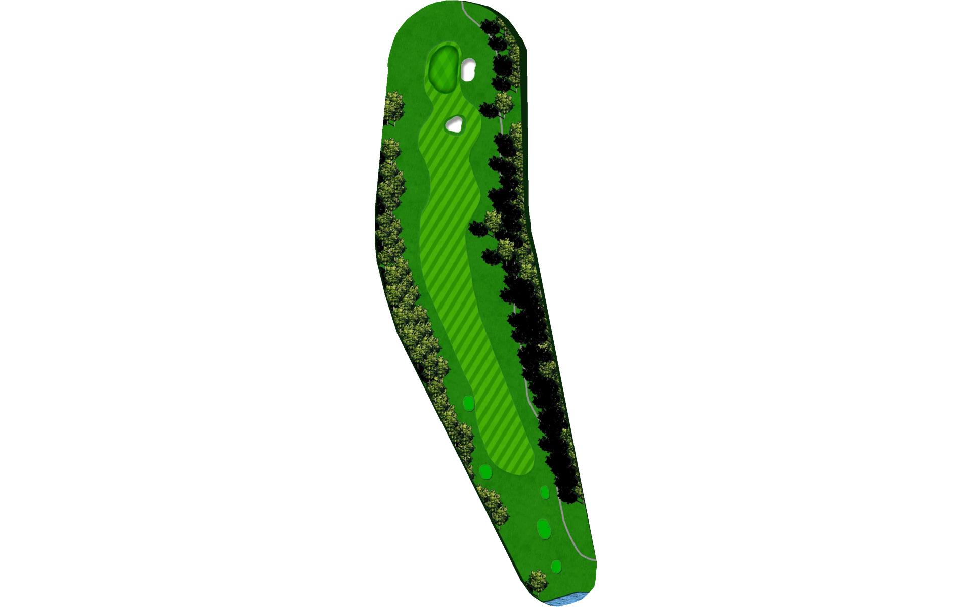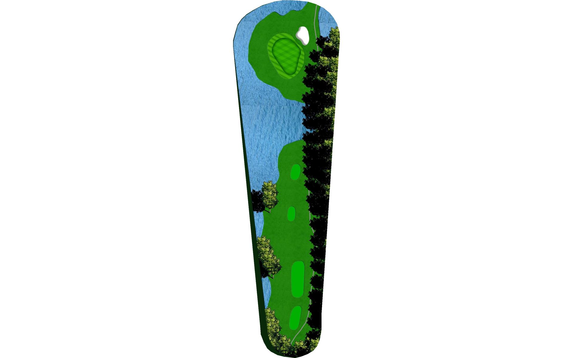 This well guarded green is best played by mid to long iron to the middle of the green. The green has false front and is surrounded by water and penalty area.