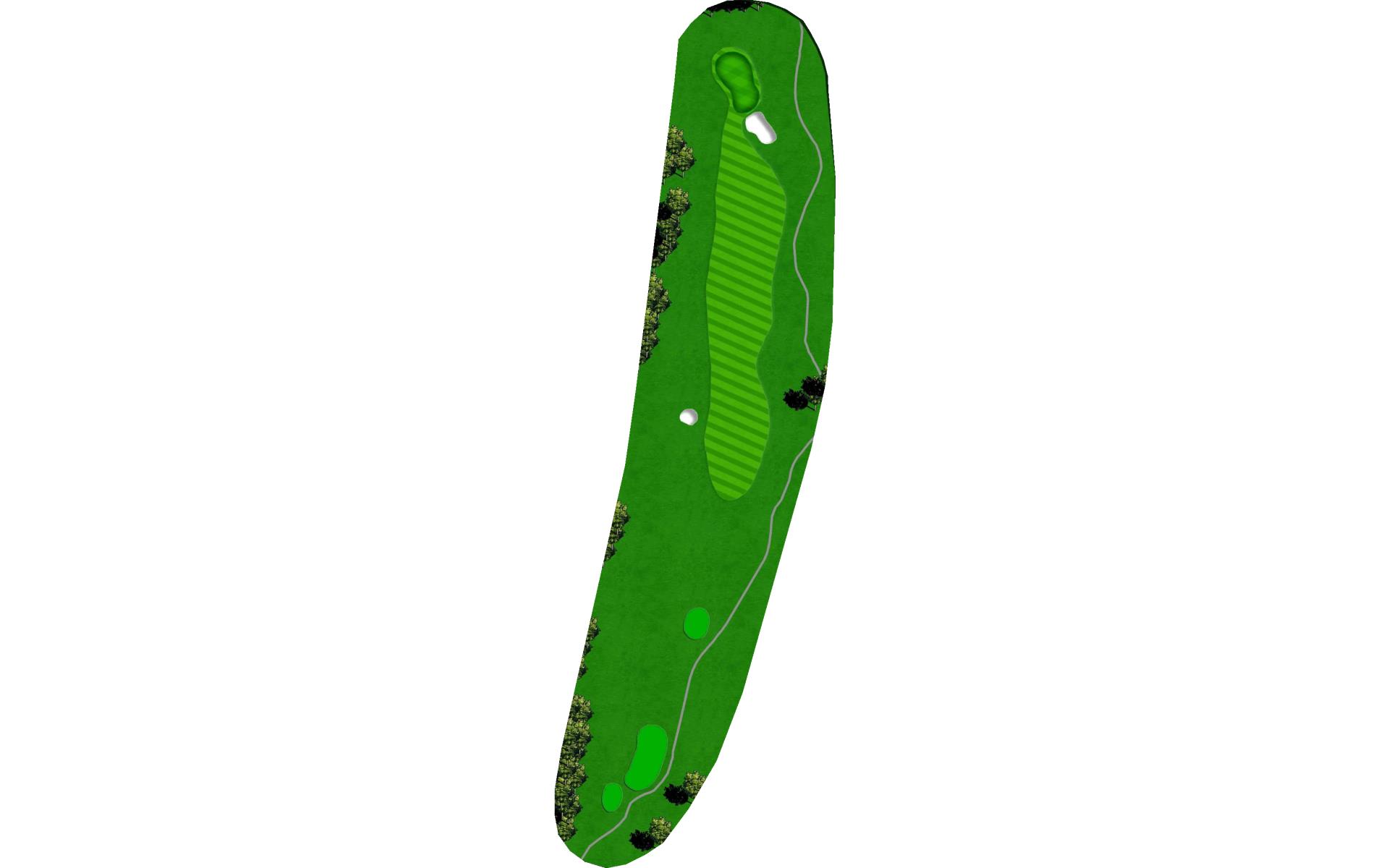 This short par 3 has teeth! Favor the right side of the green as shots typically release left on this surface. Bunkers right of the green will provide a very challenging up & down. Miss here is short of the front of the green. Shots that land on the left side of this green typically release hard left toward the creek. Height on your shot is a premium on this challenging par 3.
