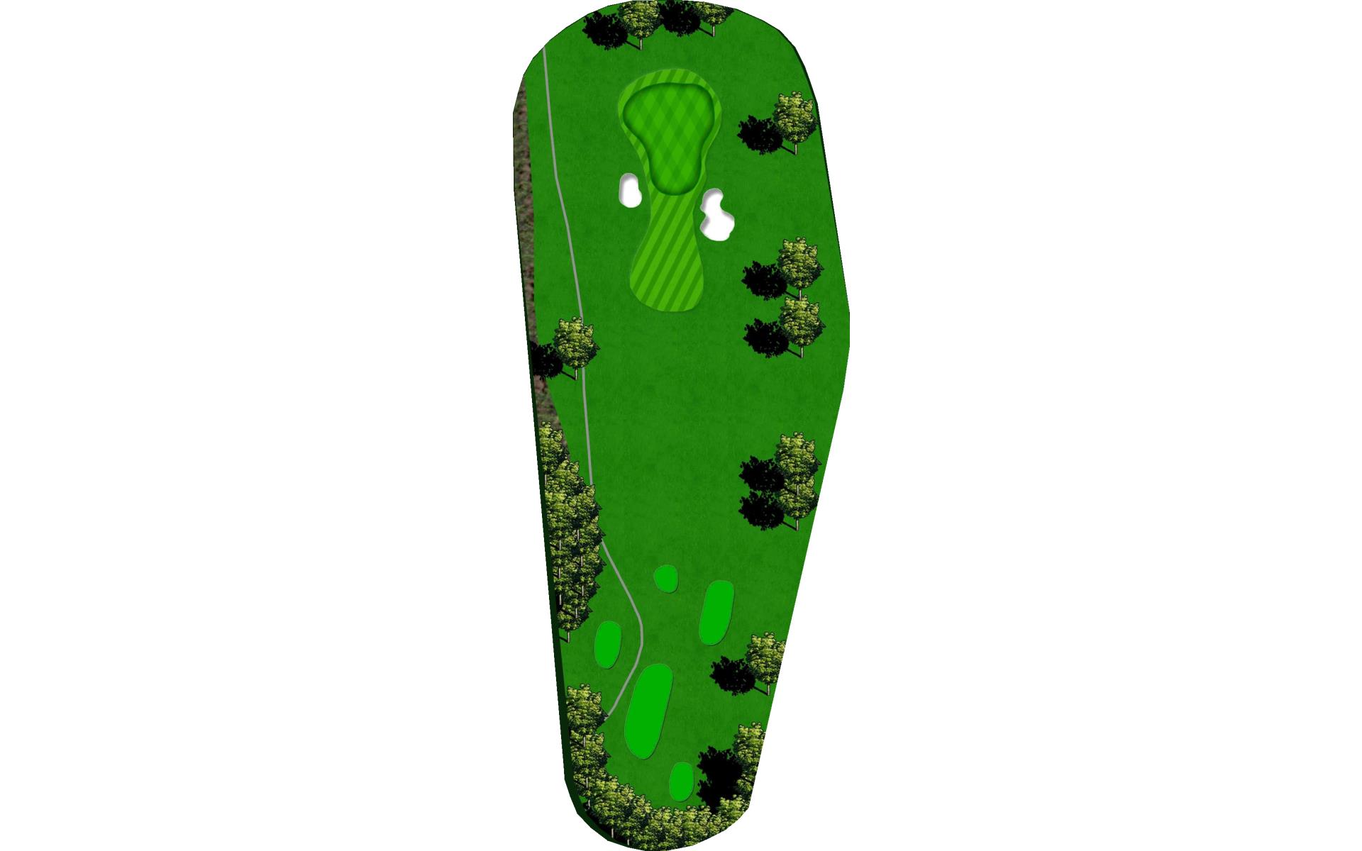 This uphill par 3 features a greenside bunker on the left and right side. Adding a few yards is recommended as this green is elevated from t…