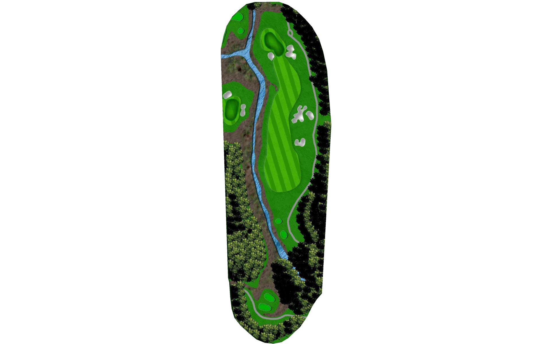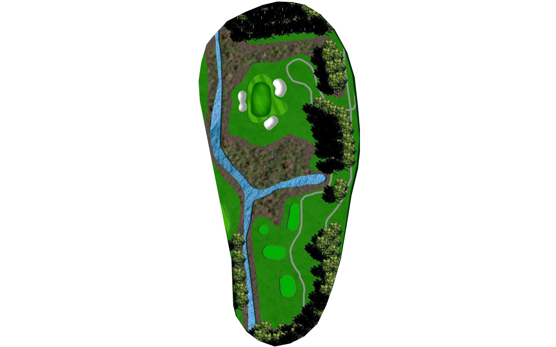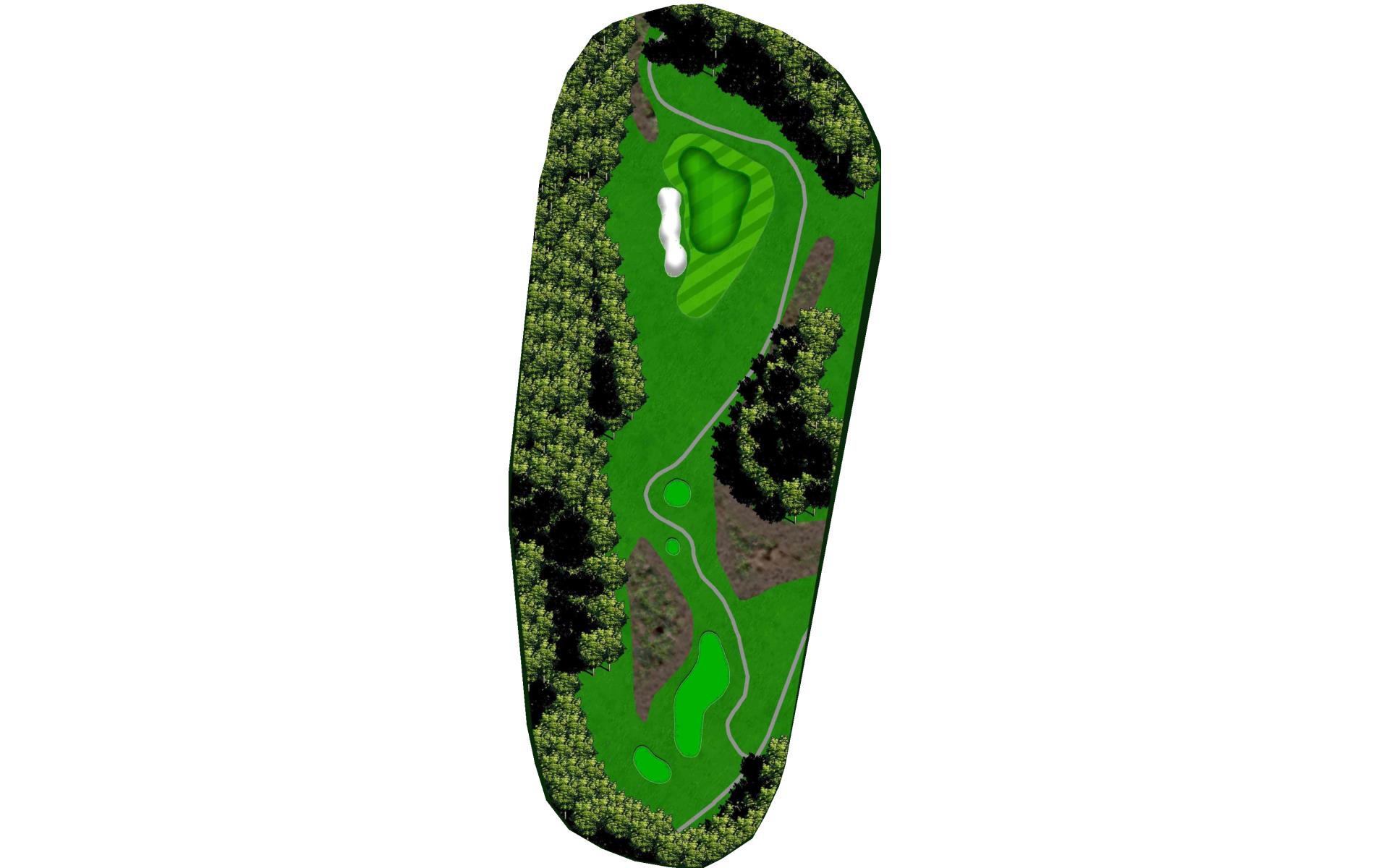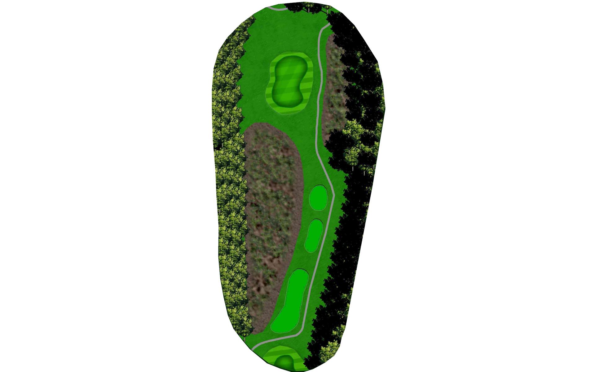 Tempting short Par 4 that is best played by laying up to 110 yards from tee in between the fairway bunkers. Green has a bowl on the right side that deflects in mishit balls to the right. Favor the left side of the green when pin is on the left