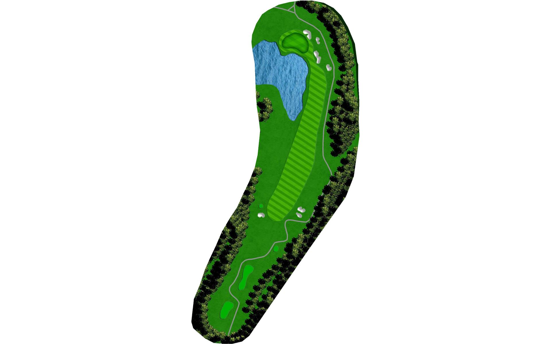 Another great Par 5 that you need to favor the left center of the fairway on your tee shot. This is where the hole begins as you want to lay up to 100-150 yards, but there is a lake to the right side of the fairway so be careful with your layup as the farther up the hole you play the more the penalty are comes in play. Green slopes hard left to right so once again distance control is key to you having a chance at birdie here. The longest players do have a shot at reaching this green, but requires two well struck shots
