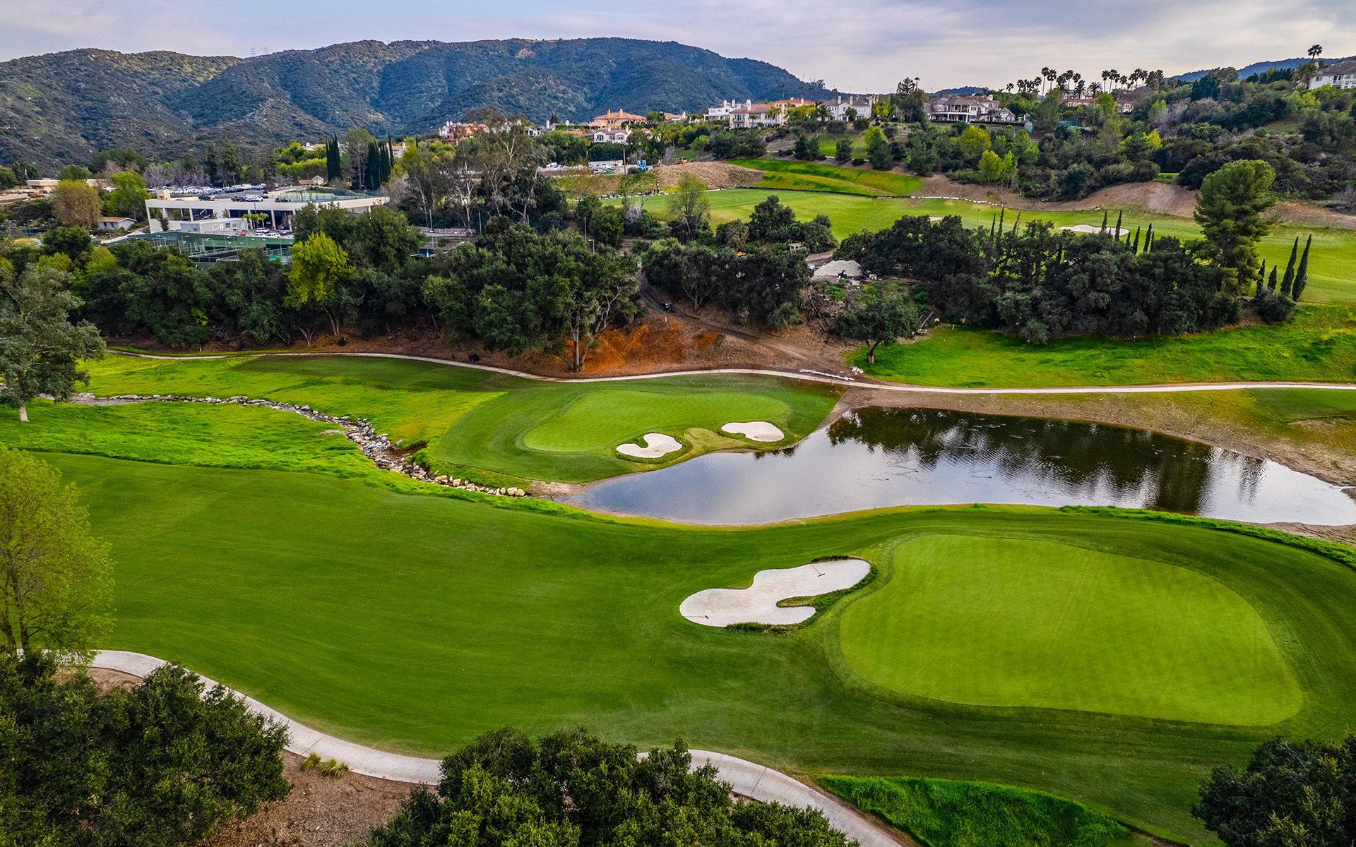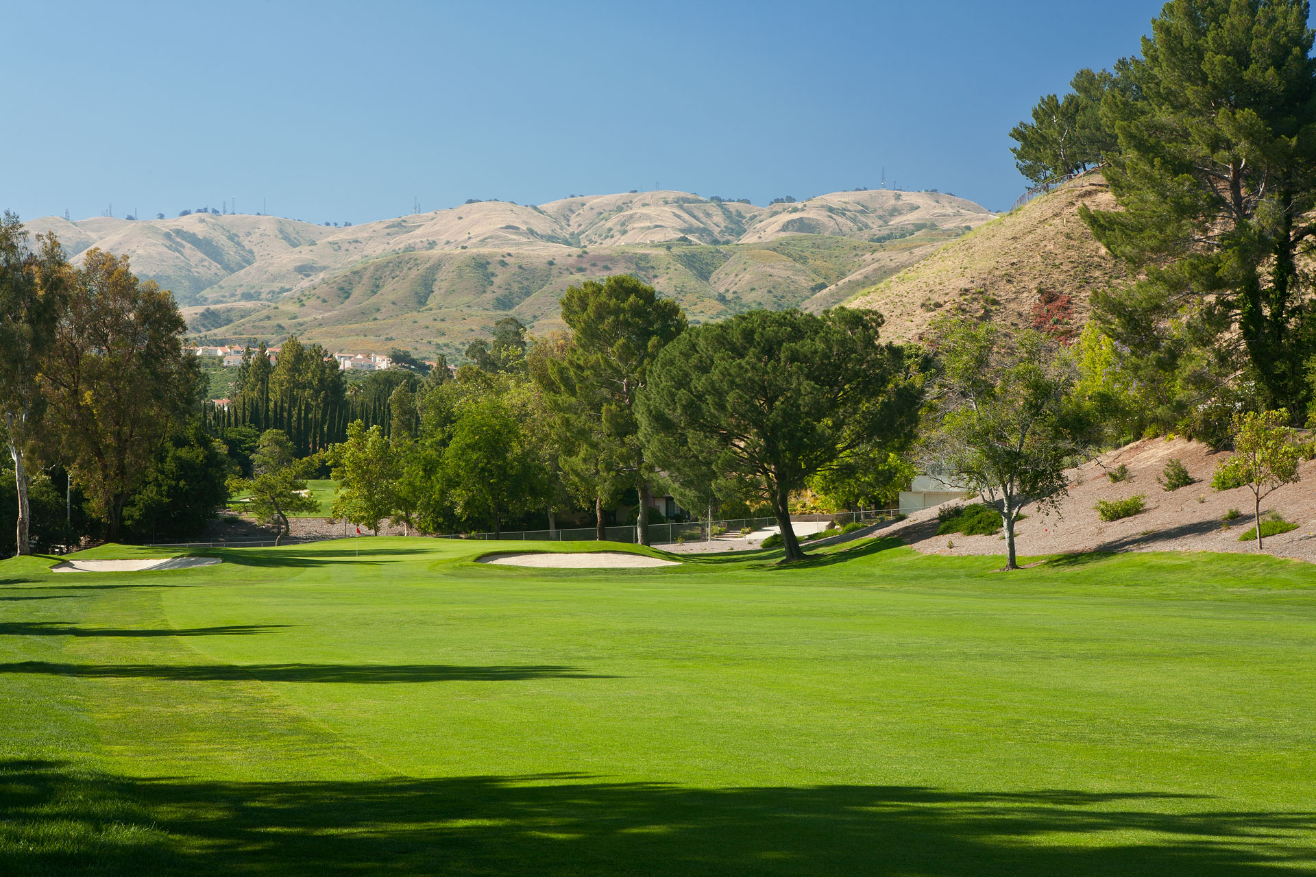 Surrounded by the green rolling hills of the Santa Susana Mountains, this Southern California golf and country club was established in 1968 and provides a picturesque setting.